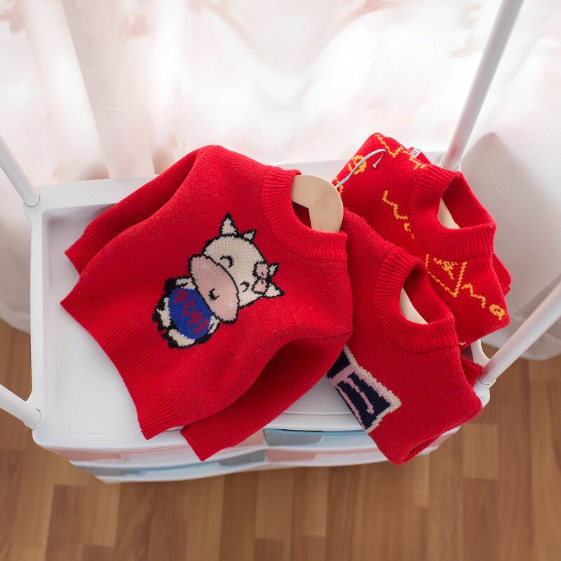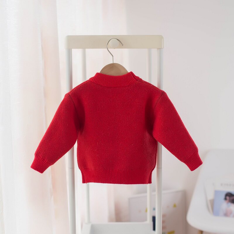 Детский утепленный модный красный свитер для девочек, в западном стиле