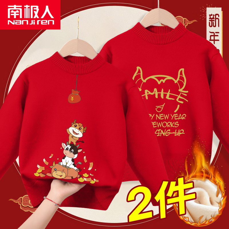 Детский утепленный зимний красный цветной свитер для мальчиков, 2021 года, высокий воротник