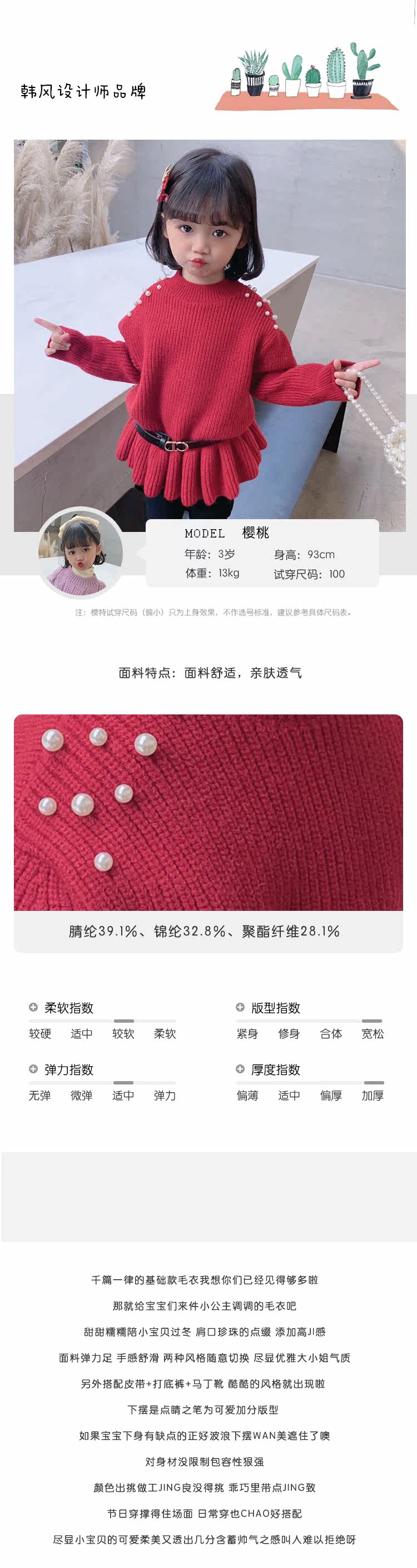 Ремень, свитер, детская длинная игла для бисера из жемчуга, пуховик, детская одежда, средней длины, 2022