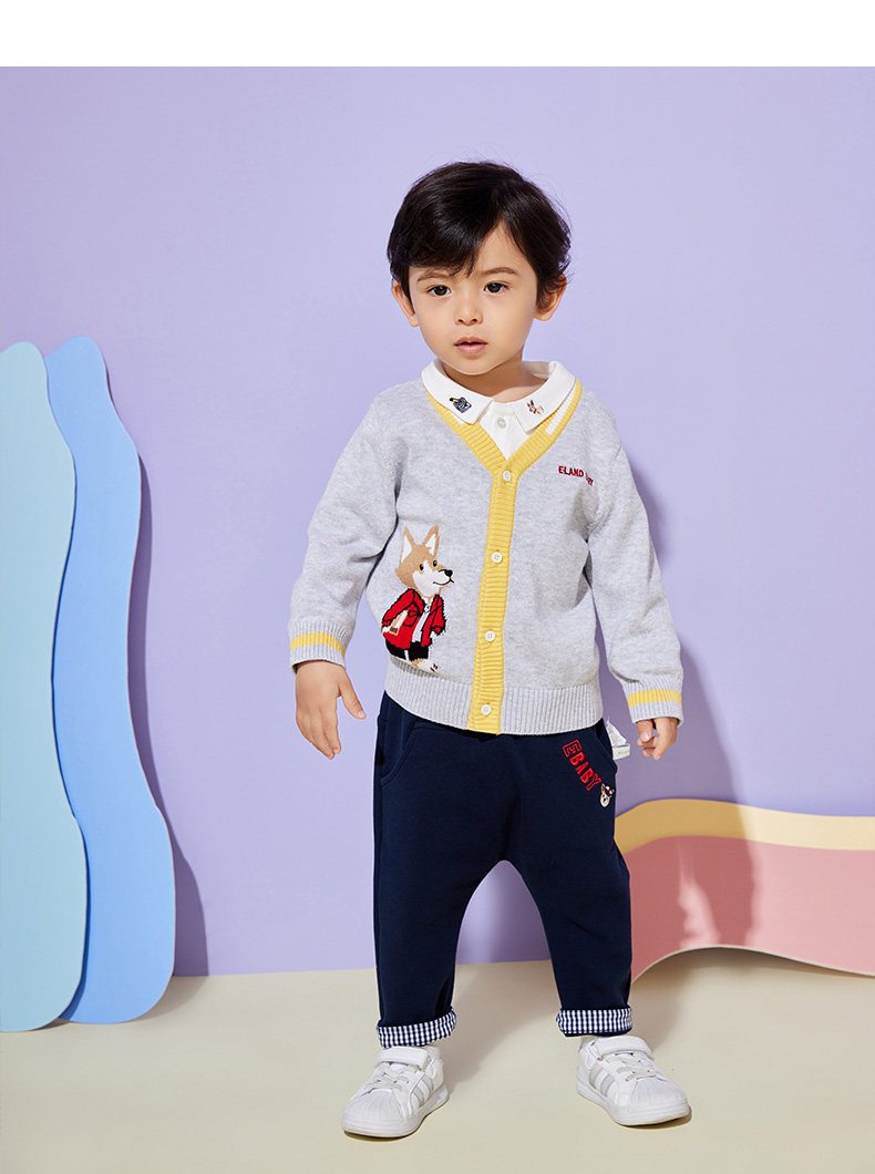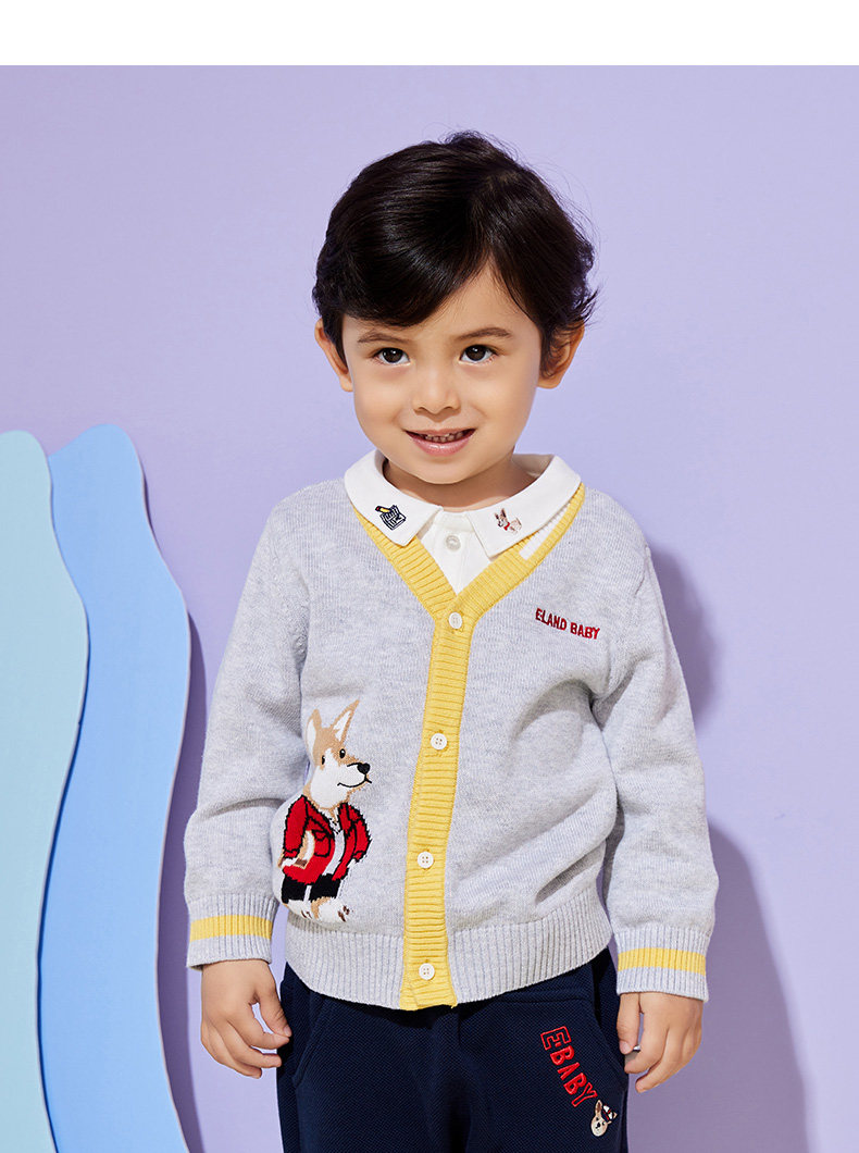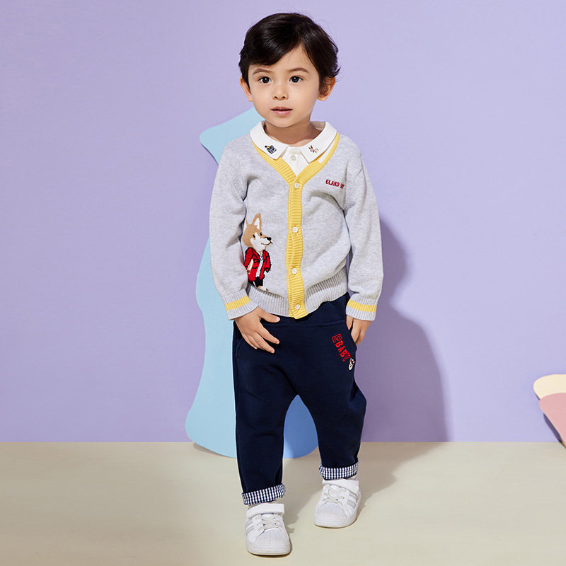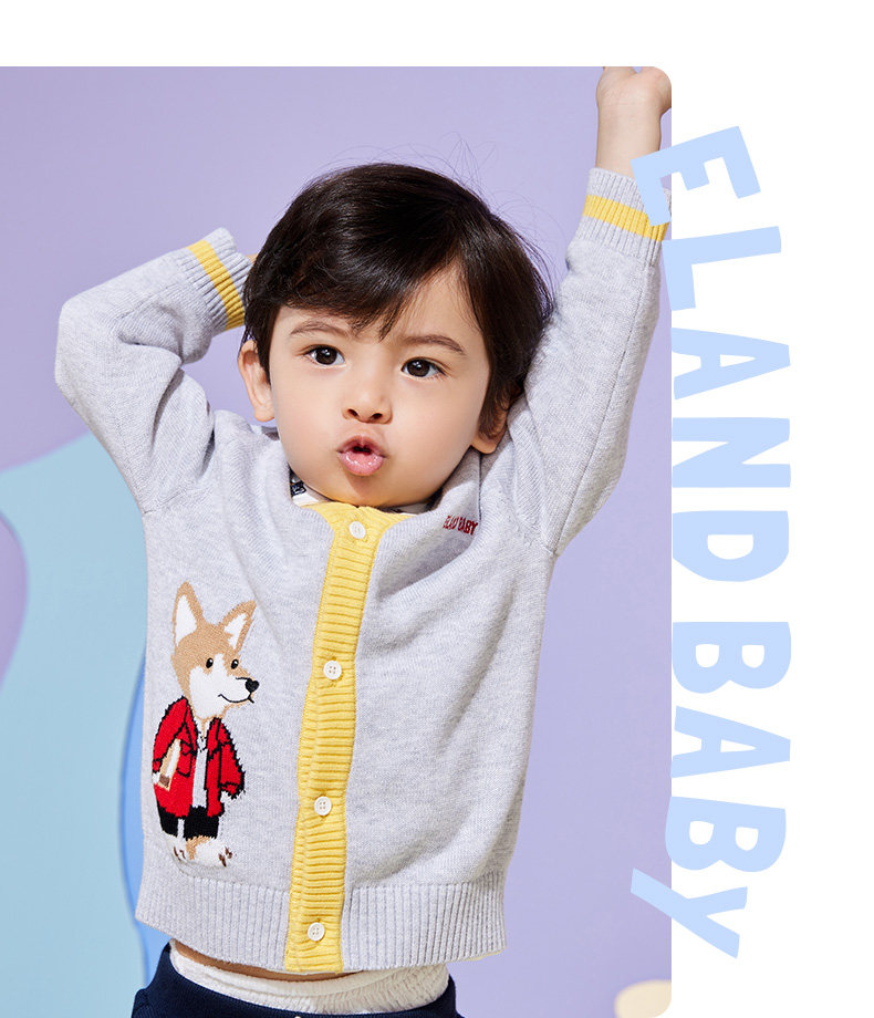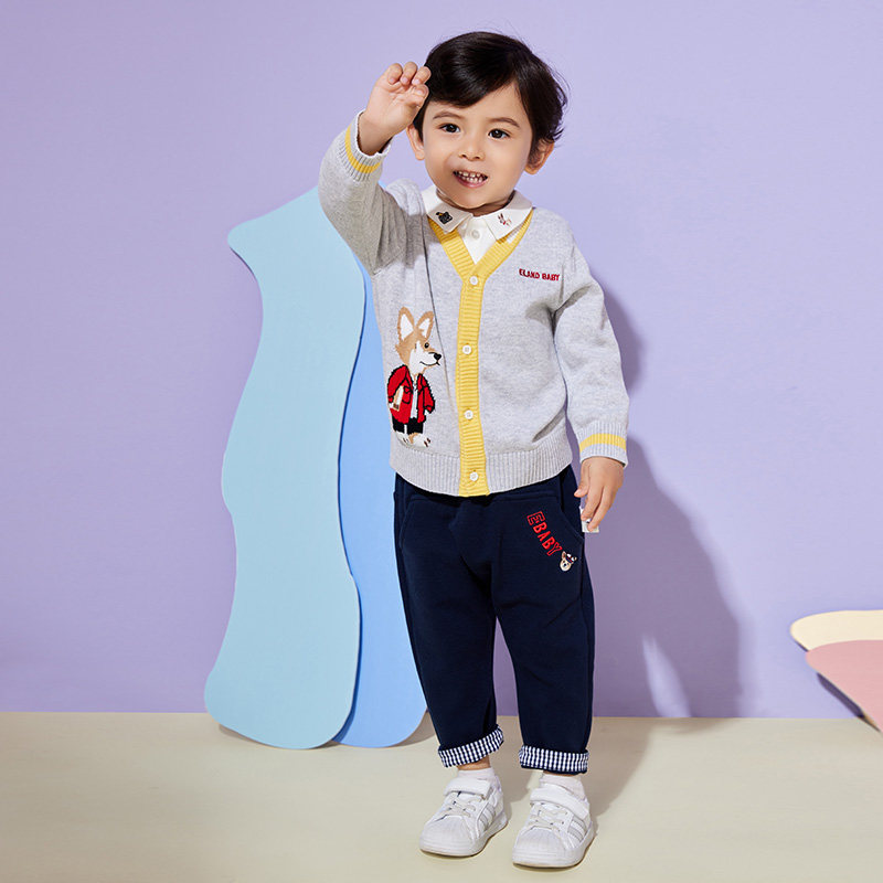 Eland Baby Love Baby осень мальчик, простота, повседневная мультипликационная вязаная кардиган