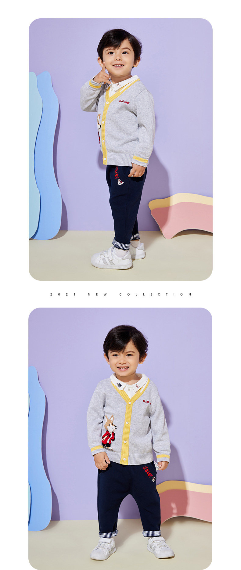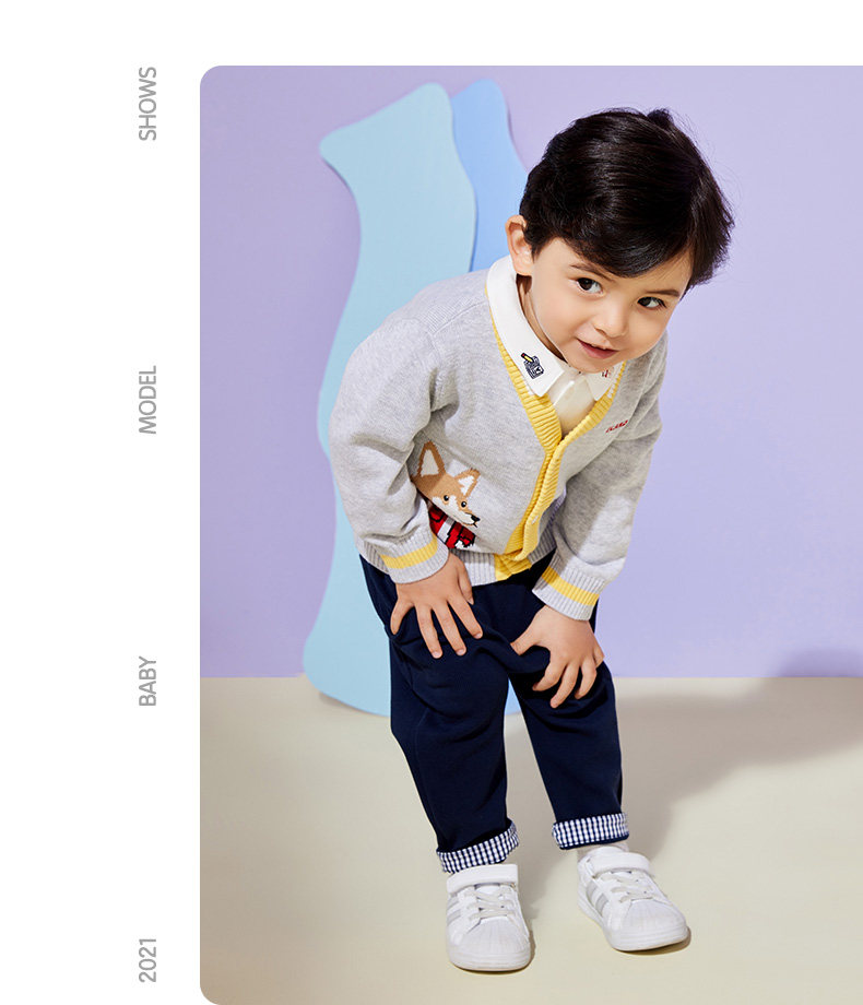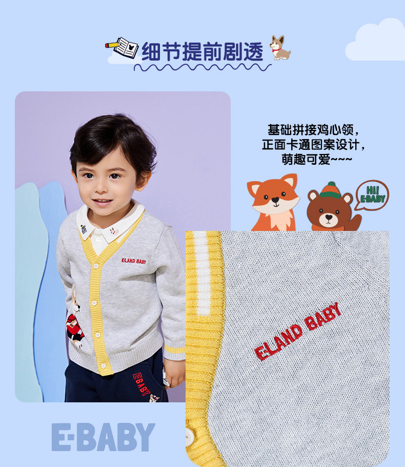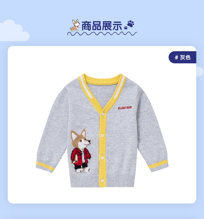 Eland Baby Love Baby осень мальчик, простота, повседневная мультипликационная вязаная кардиган