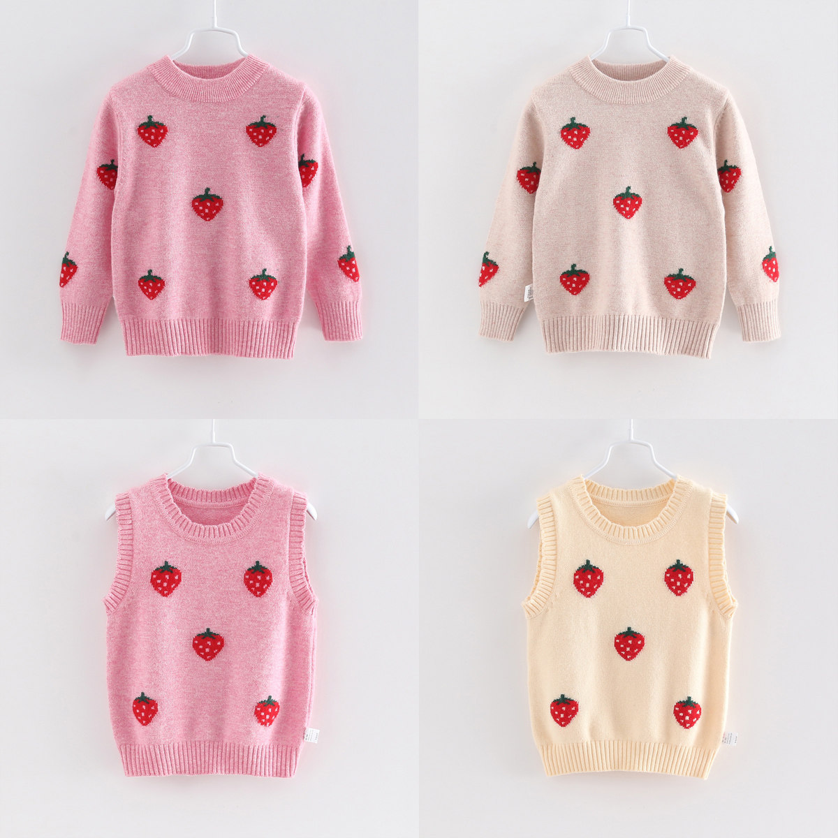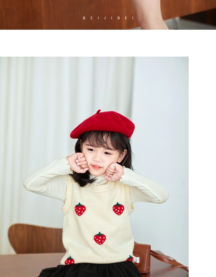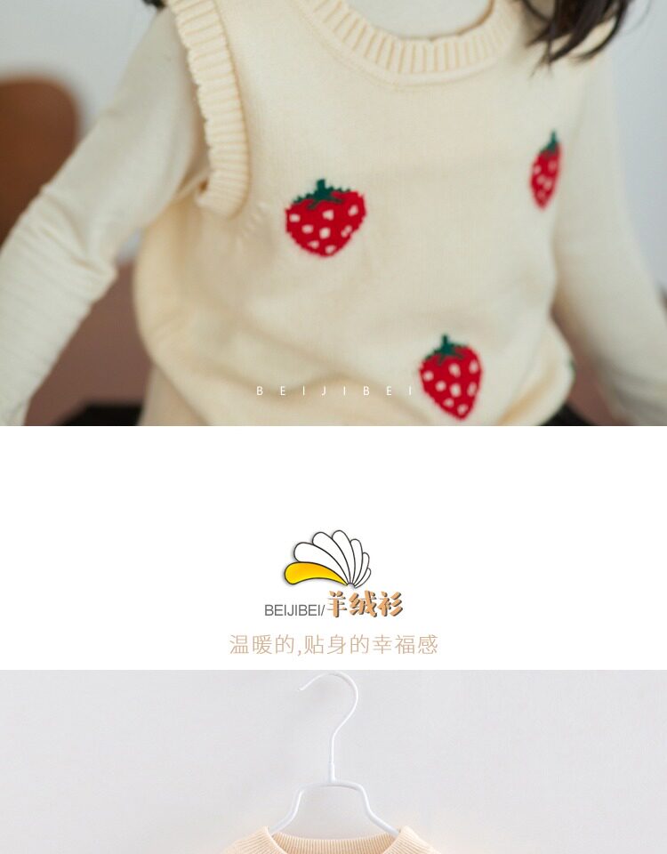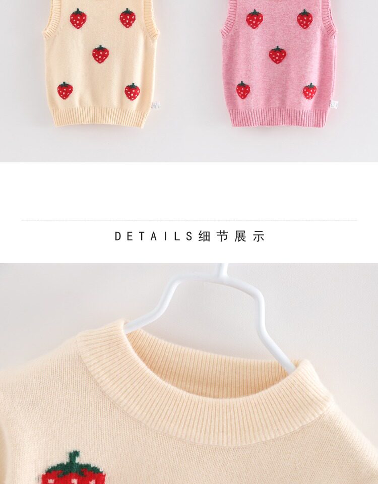 Мягкая клубника для принцессы, кашемировый свитер, детский жилет с круглым воротником, детская трикотажная майка топ