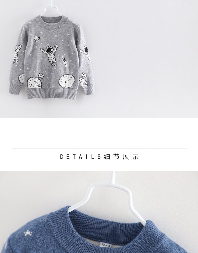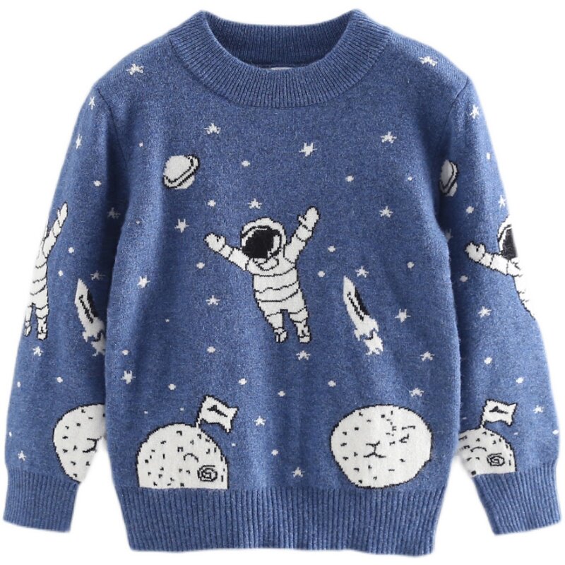 Детский кашемировый трикотажный свитер для мальчиков, детская мультяшная демисезонная утепленный лонгслив, увеличенная толщина, в западном стиле