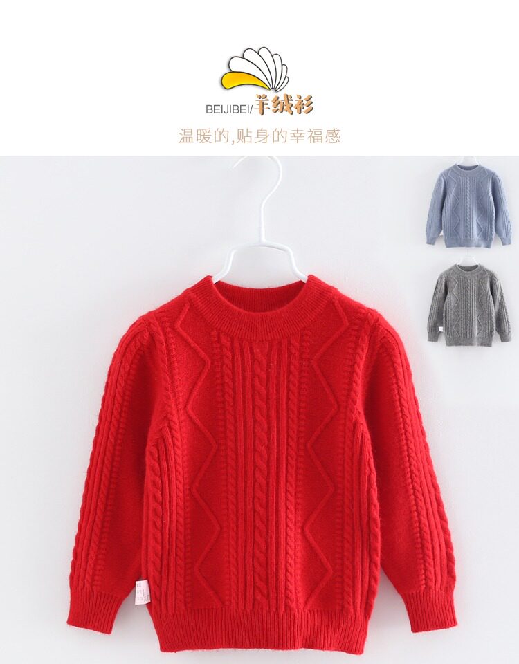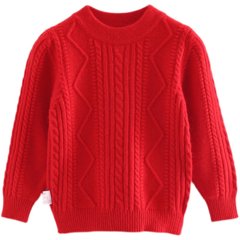 Детский шерстяной трикотажный кашемировый цветной свитер для мальчиков с круглым воротником, подходит для подростков, увеличенная толщина
