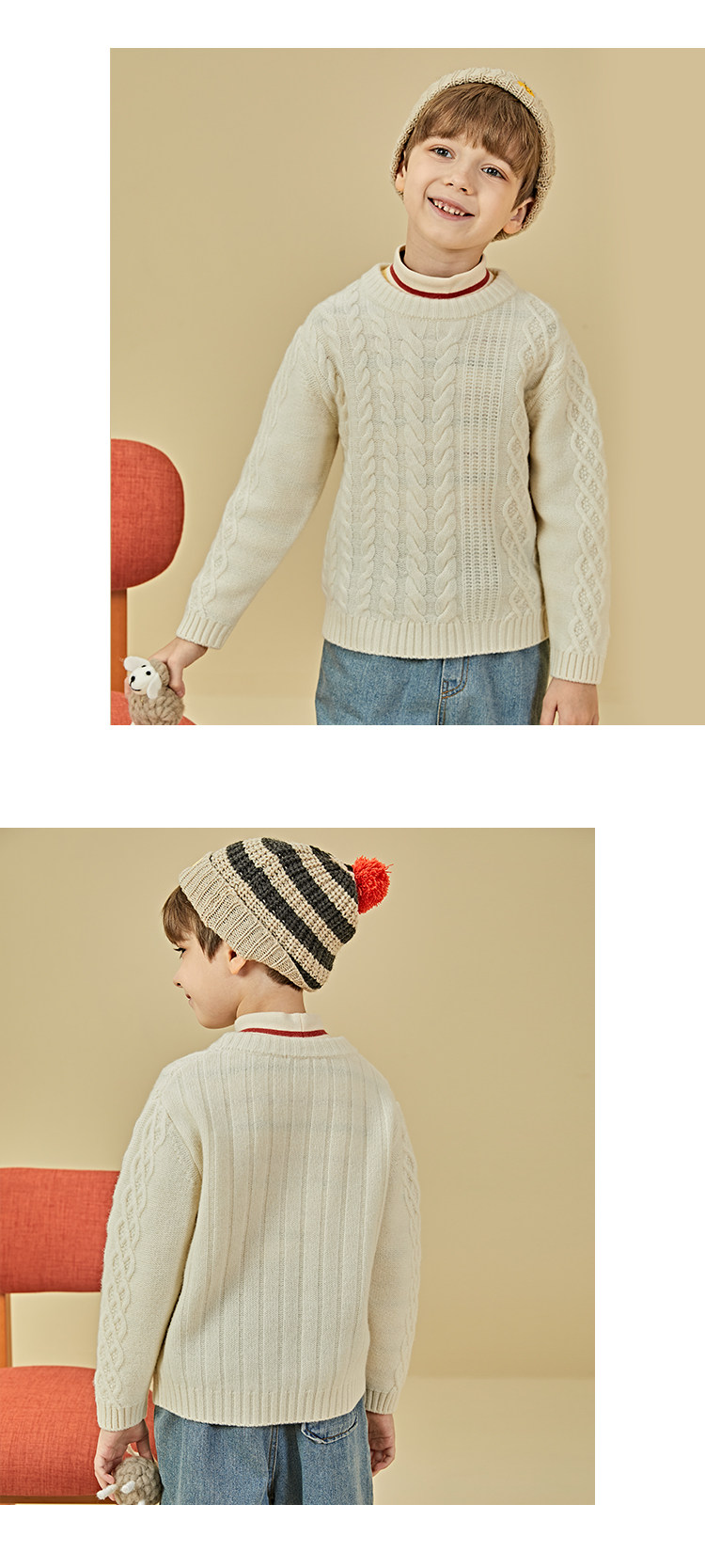 Шерстяной демисезонный детский свитер подходит для мужчин и женщин с круглым воротником, увеличенная толщина