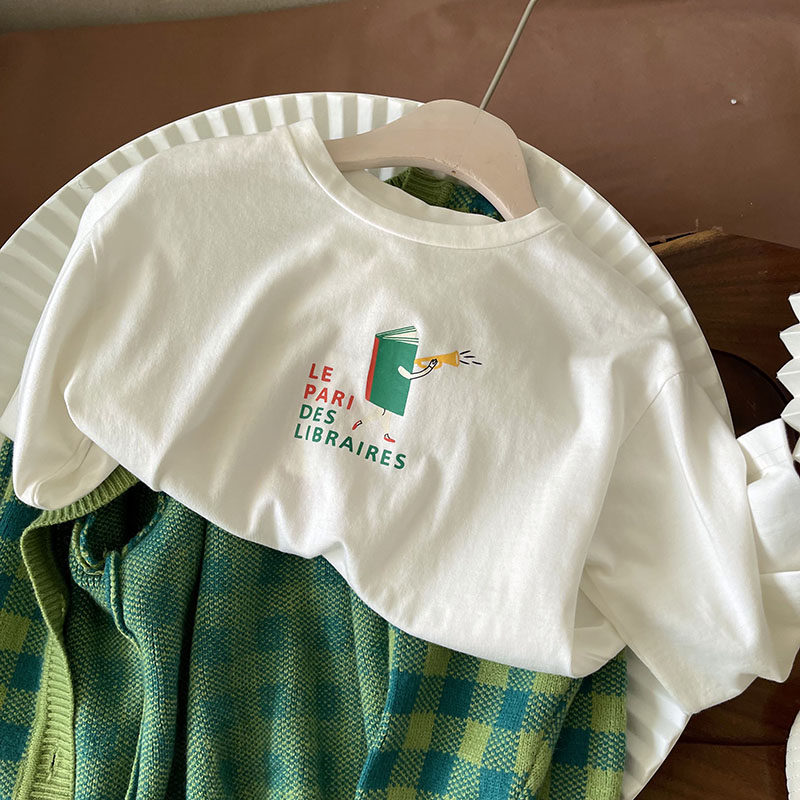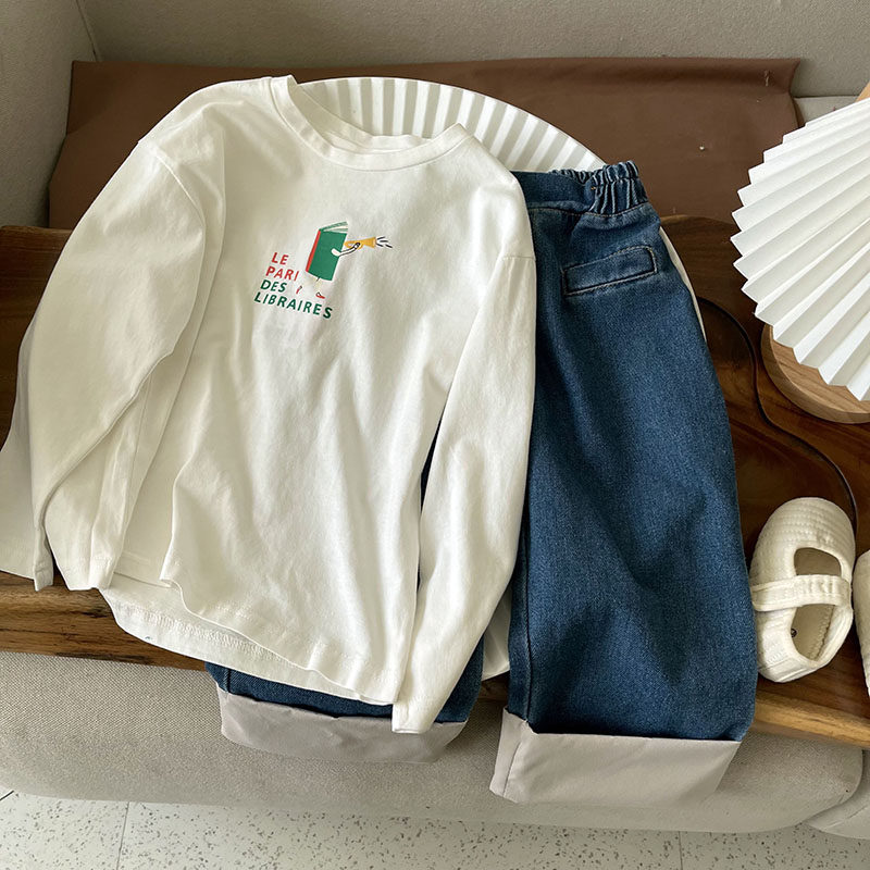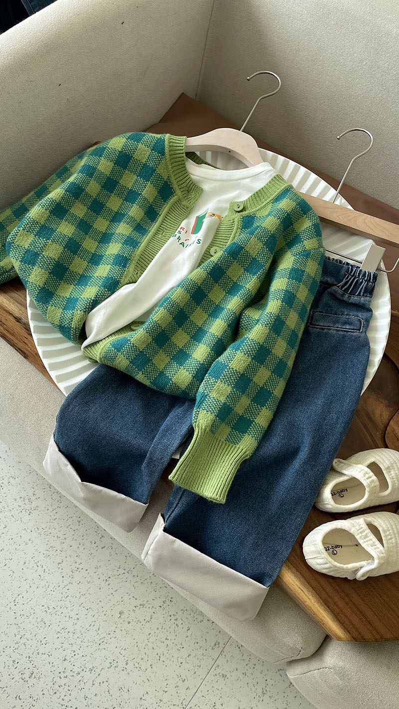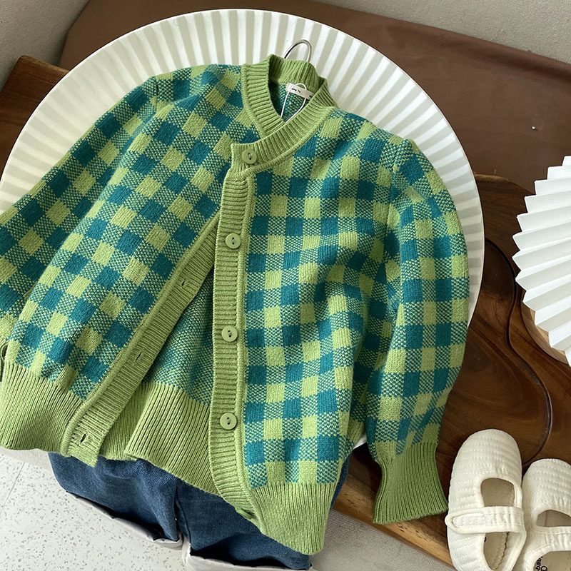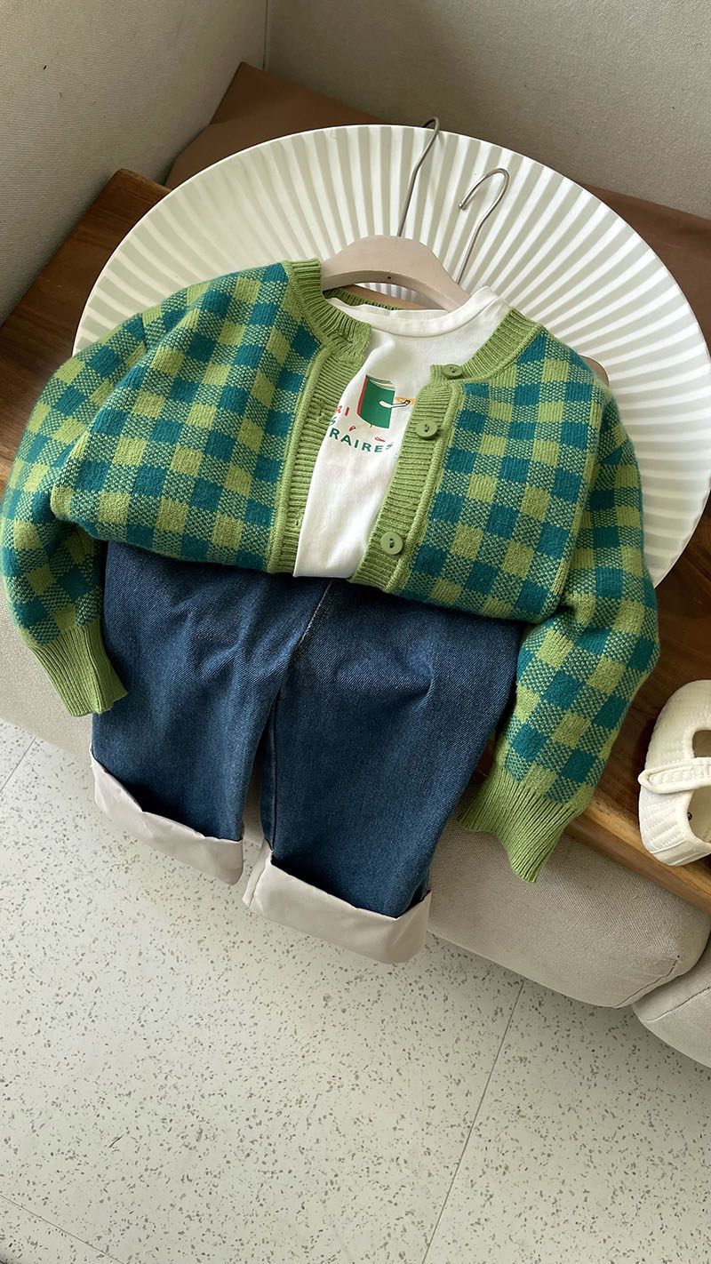 Кардиган, осенний детский свитер, трикотажный комплект, лонгслив с круглым воротником, в западном стиле