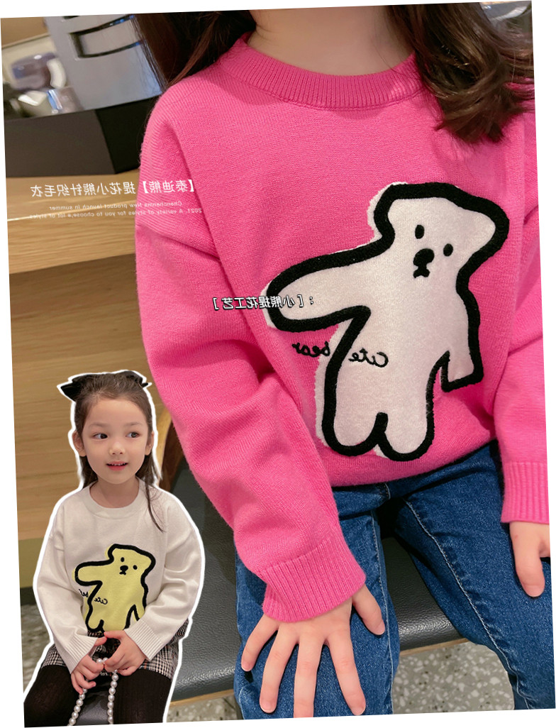 Мультяшный демисезонный осенний трикотажный базовый детский зимний свитер, детская одежда, с медвежатами, подходит для подростков