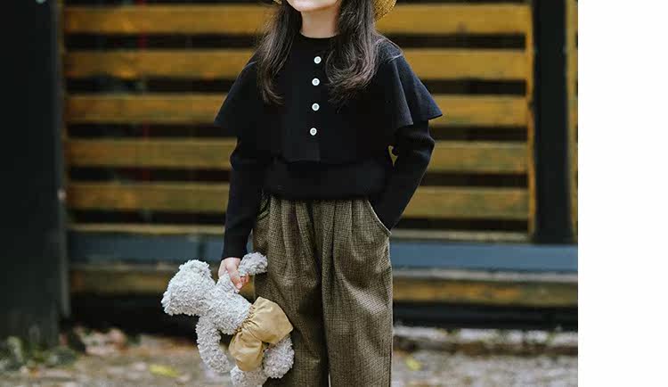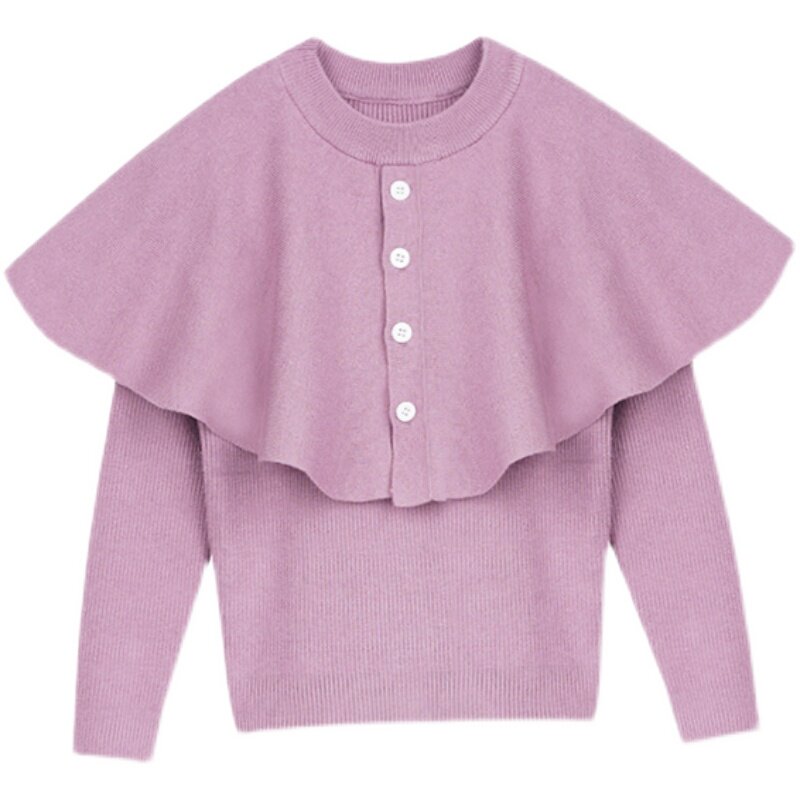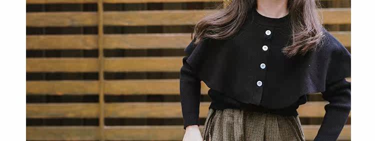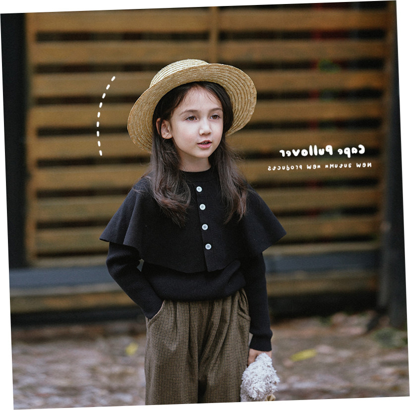 Детский черный плащ, свитер, трикотажная базовая приятная телу накидка для девочек, 2022, в западном стиле, в корейском стиле