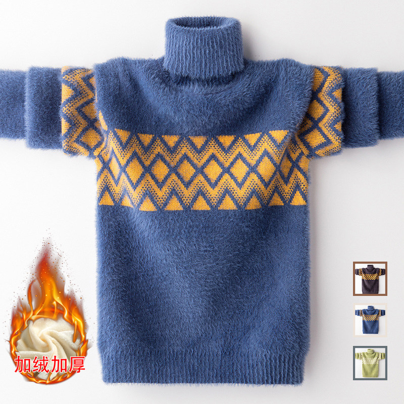 Детский бархатный демисезонный утепленный трикотажный свитер для мальчиков, увеличенная толщина, в корейском стиле, подходит для подростков
