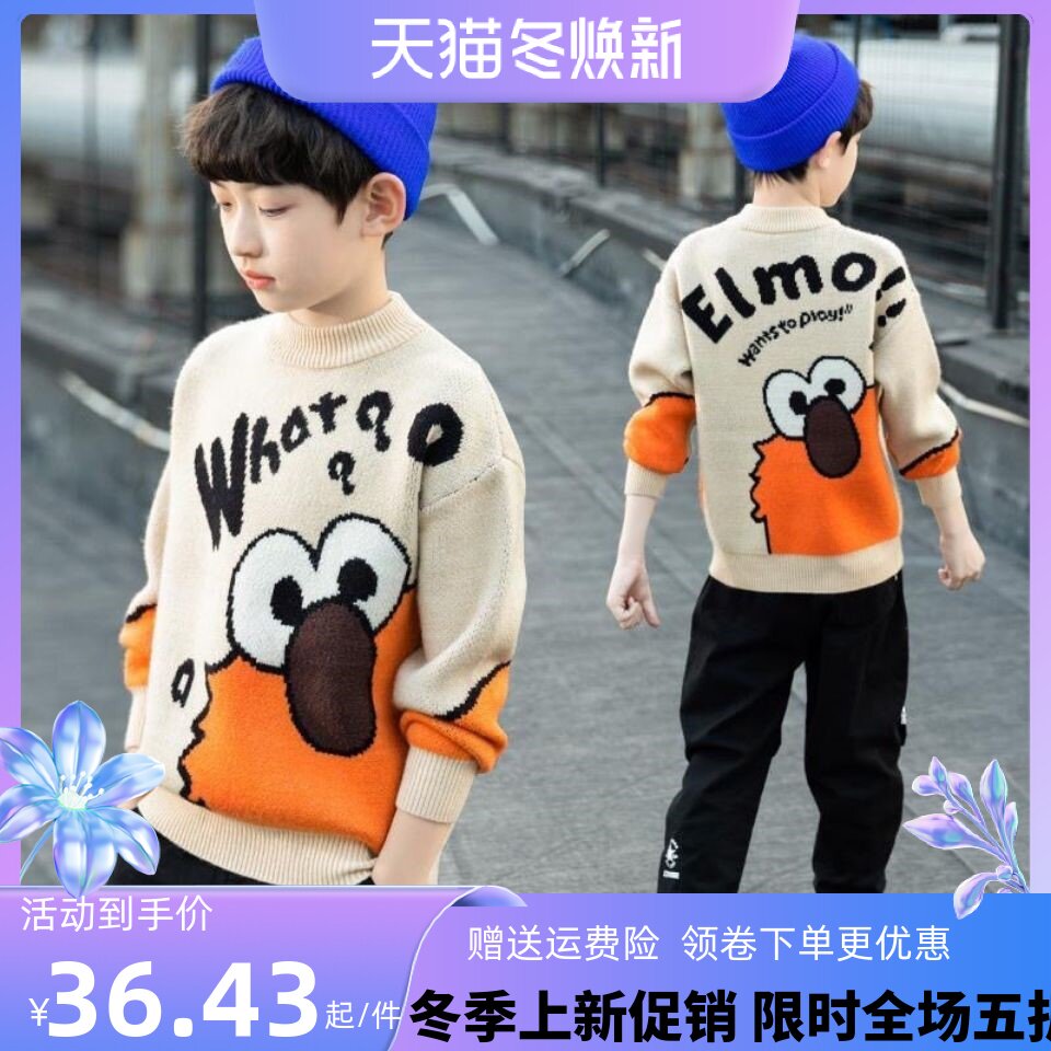 Осенний пуховик для мальчиков с круглым воротником, трикотажный модный трендовый свитер, высокий воротник, подходит для подростков