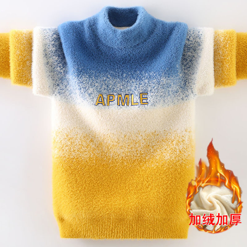 Бархатный утепленный детский удерживающий тепло свитер для мальчиков, детская одежда, градиент, подходит для подростков