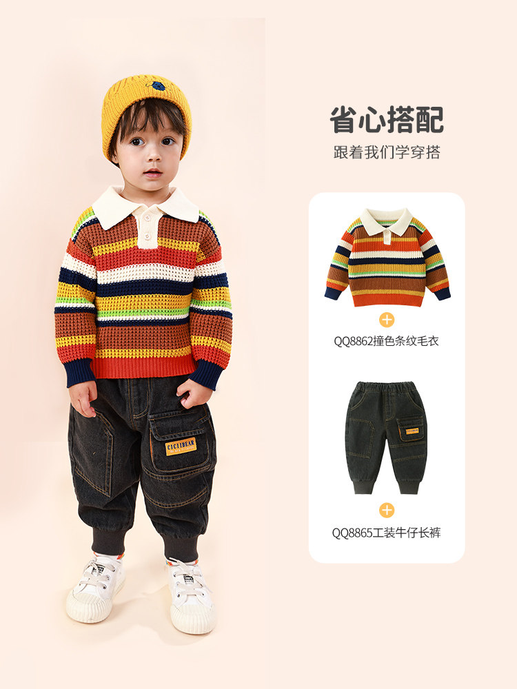 Детский хлопковый осенний свитер, детская трикотажная футболка polo для мальчиков