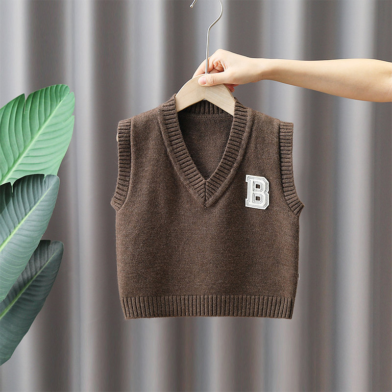 Трикотажный демисезонный жилет для мальчиков, детский шерстяной осенний свитер, в западном стиле