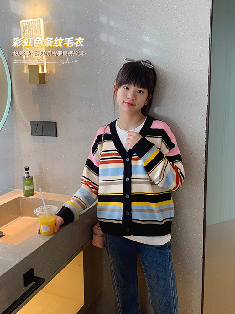 Осенний кардиган, свитер, детская трикотажная куртка, подходит для подростков, V-образный вырез