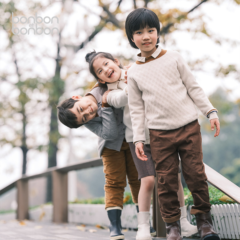 Bonbon et Bonbon Детский контрастный кашемировый свитер на 100%круглая шея универсальная нижняя рубашка осень новая