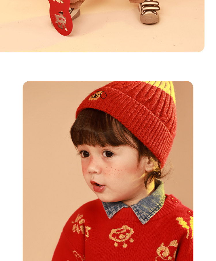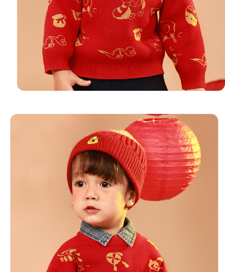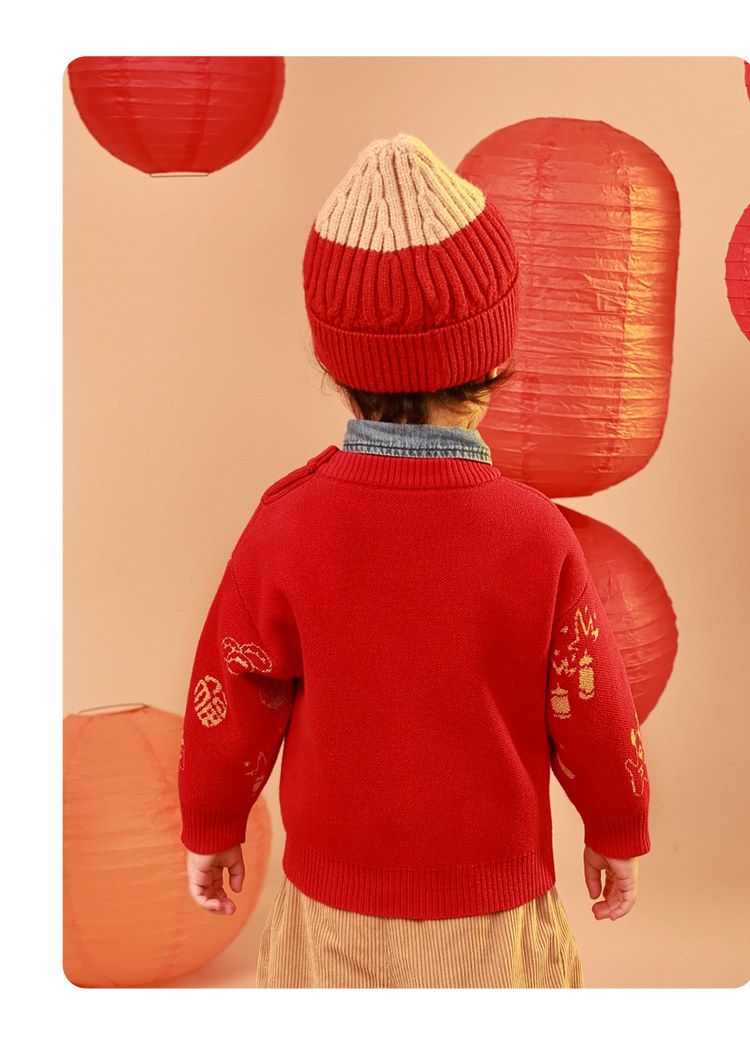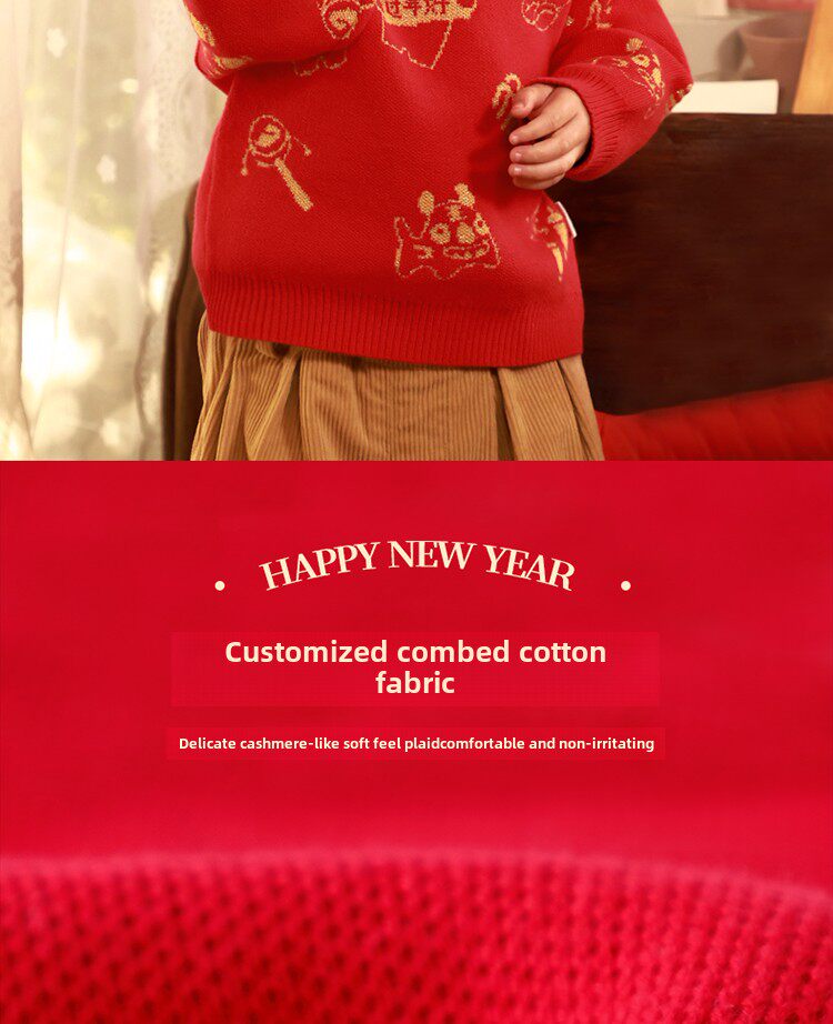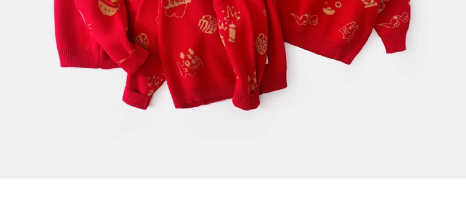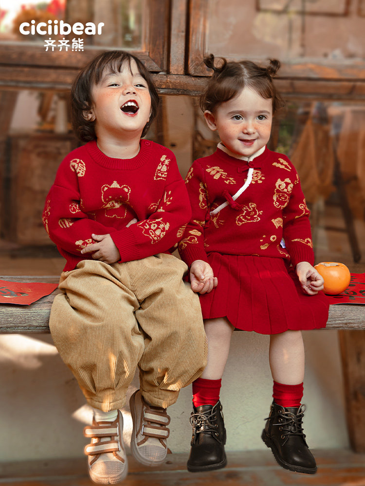 [Эксклюзивная прямая трансляция] Новогодний красный свитер Qiqi Bear Baby Осенне-зимняя детская одежда Новогодняя одежда Свитера для мальчиков Женские