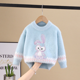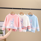 Бархатный свитер, демисезонный трикотажный комплект для девочек, лонгслив с круглым воротником, в корейском стиле, в западном стиле