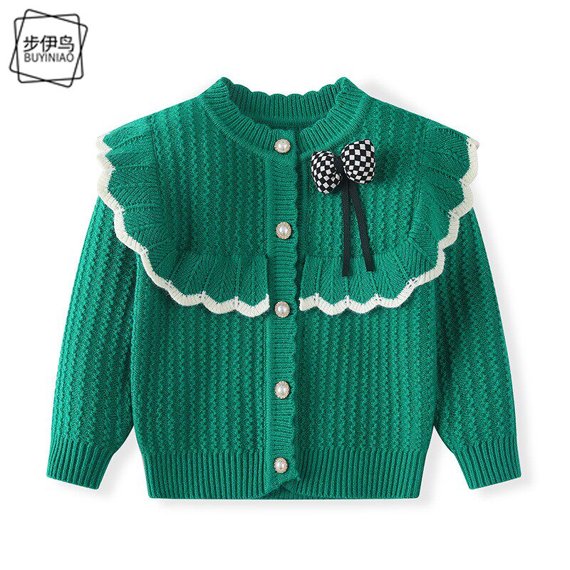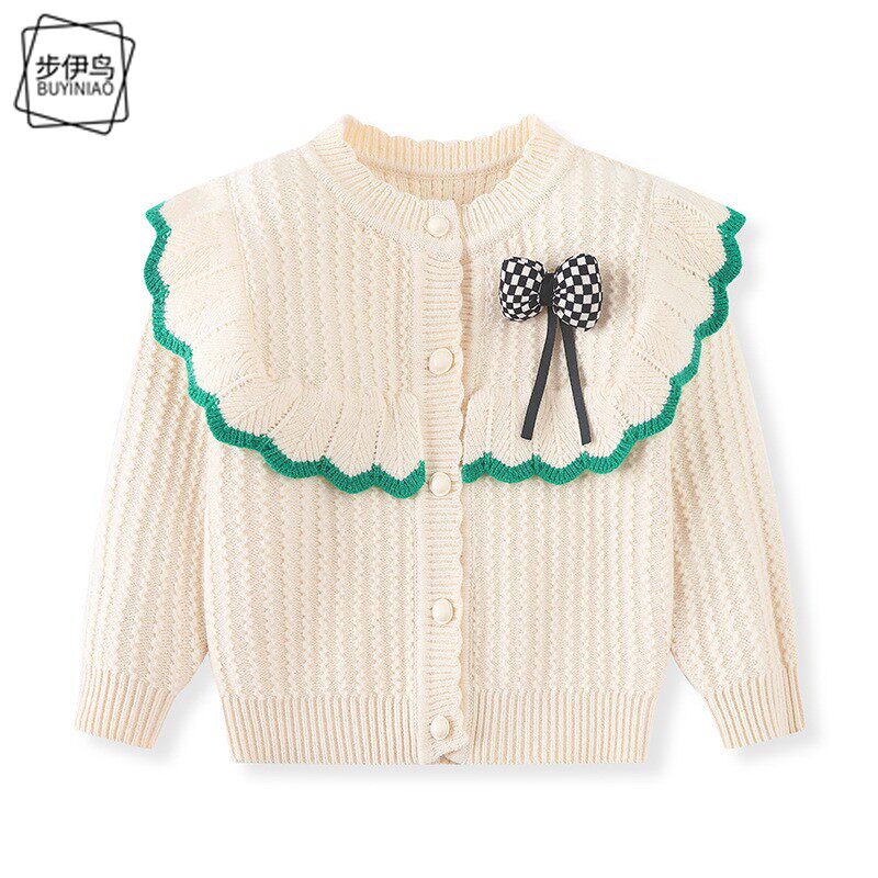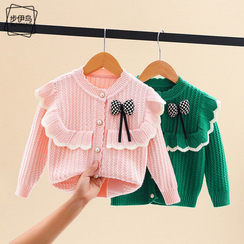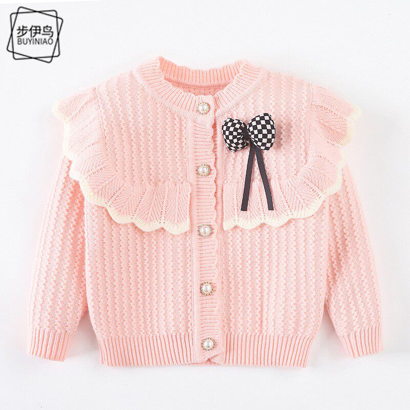Демисезонный детский милый удерживающий тепло лонгслив с бантиком, кардиган, в корейском стиле, в западном стиле