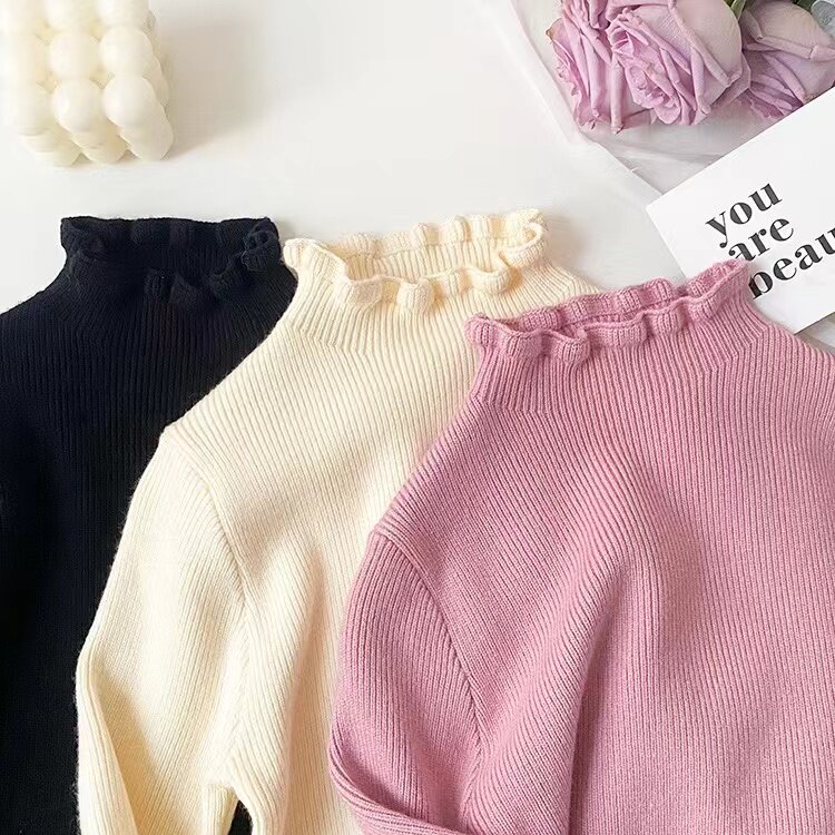 Детский зимний трикотажный эластичный милый базовый приятный телу свитер, в западном стиле