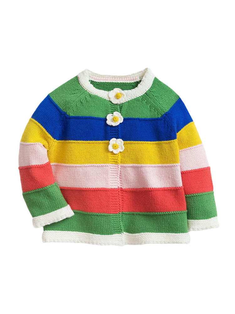 Трикотажный комфортный радужный импортный весенний свитер, в цветочек, детская одежда, 2023