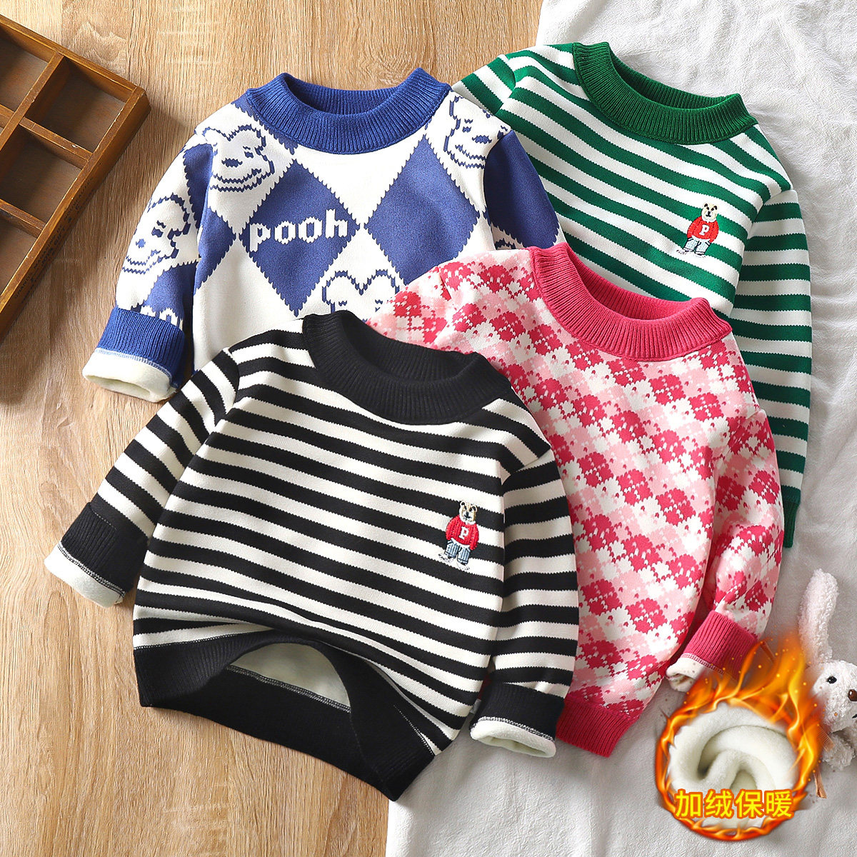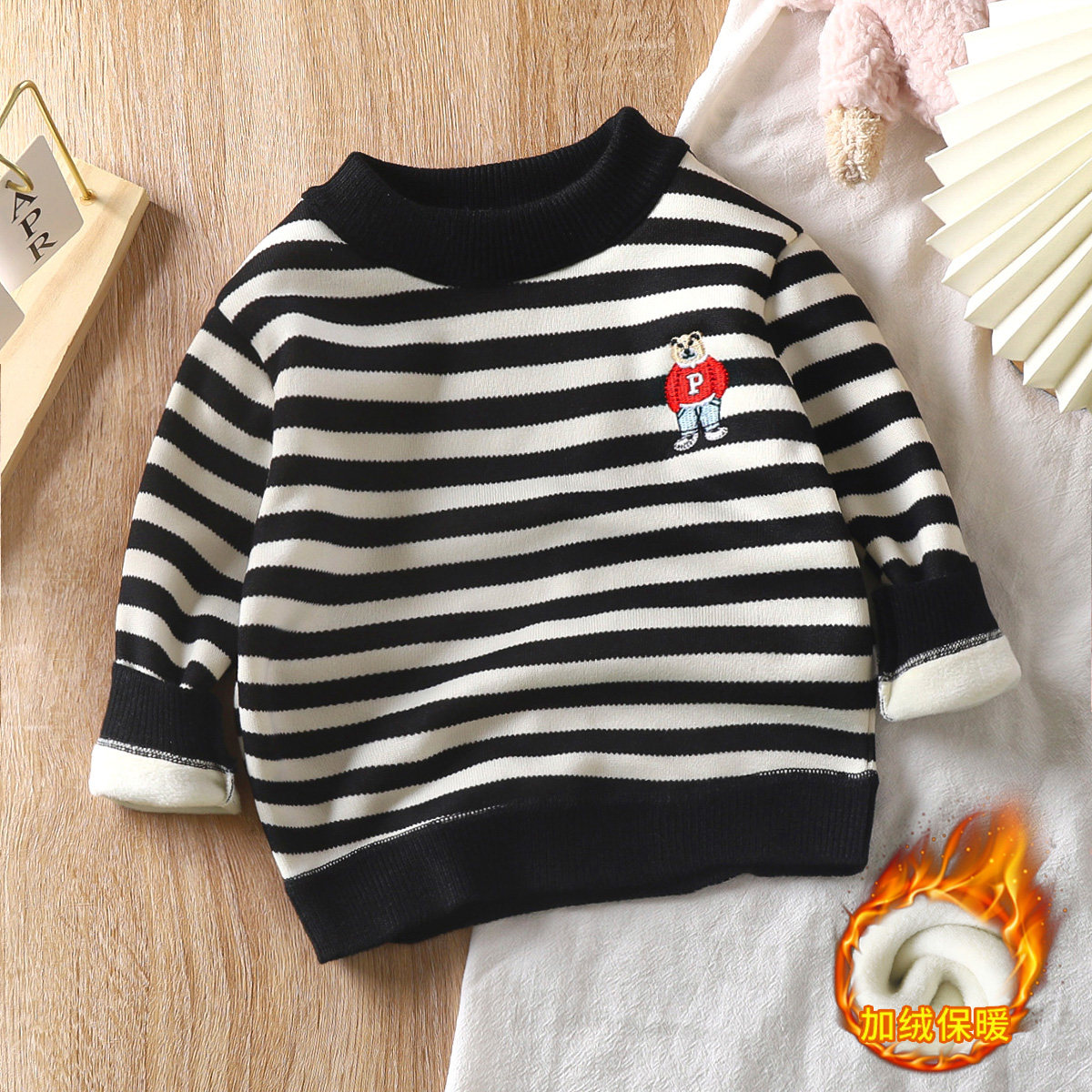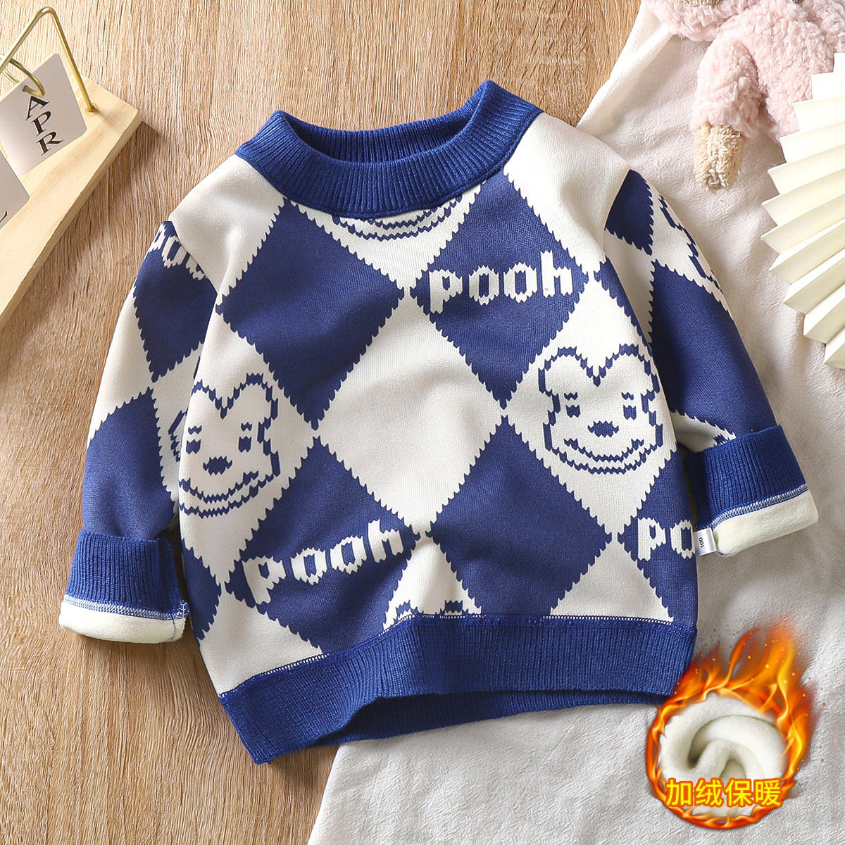 Детский утепленный свитер, базовая зимняя детская трикотажная утепленный лонгслив для мальчиков, детская одежда