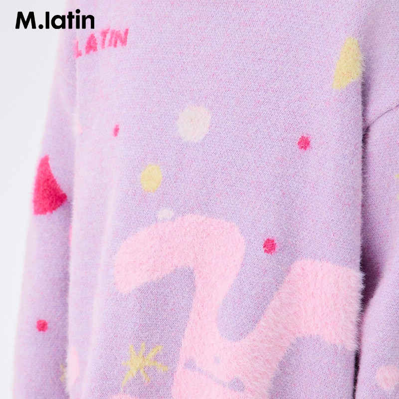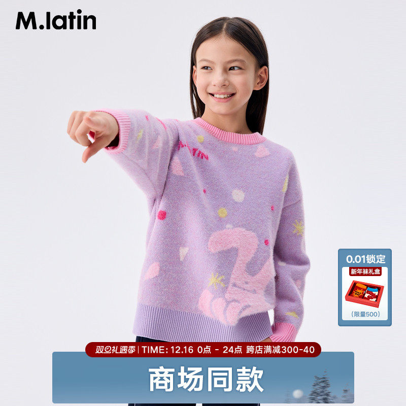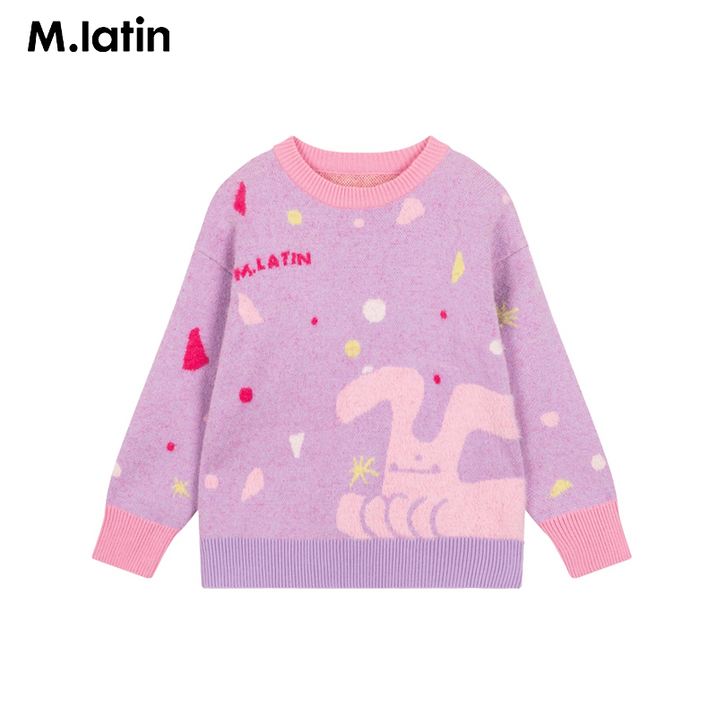 [Тот же стиль в торговых центрах] Детская одежда Maradin Детский 24-зимний женский свитер с круглым вырезом дофамина, мягкий и приятный для восковой кожи, с круглым вырезом для девочек