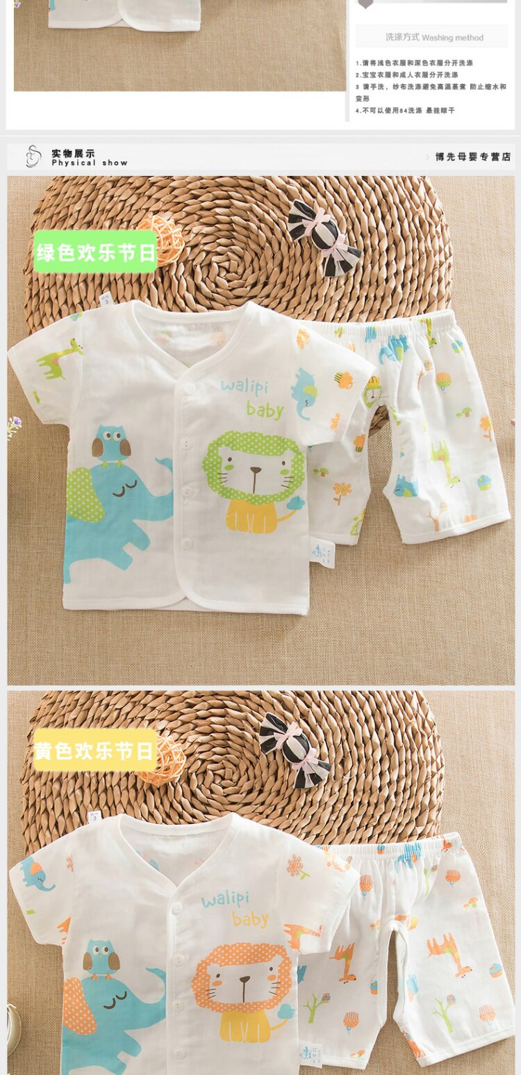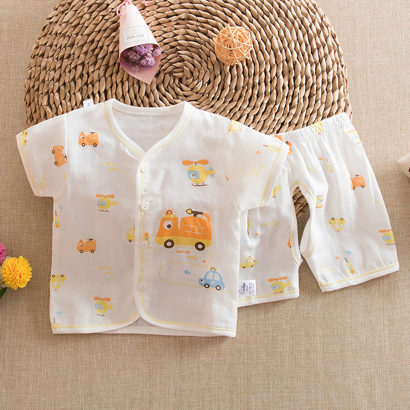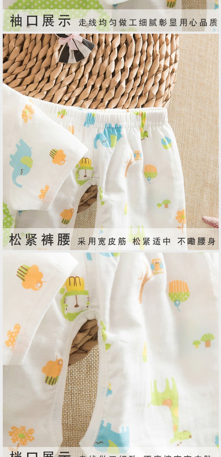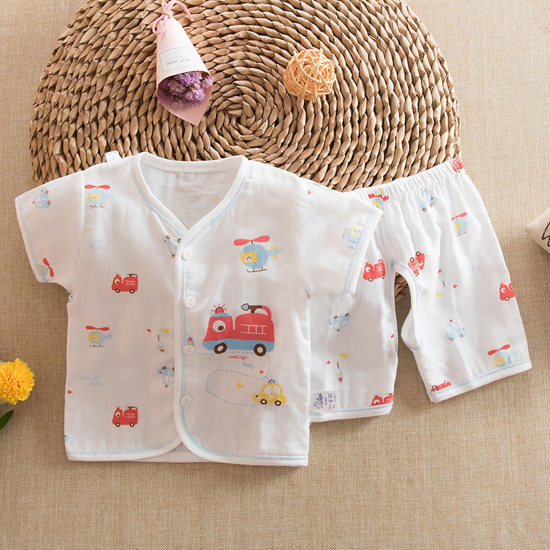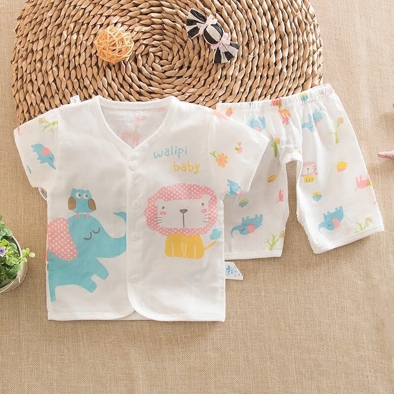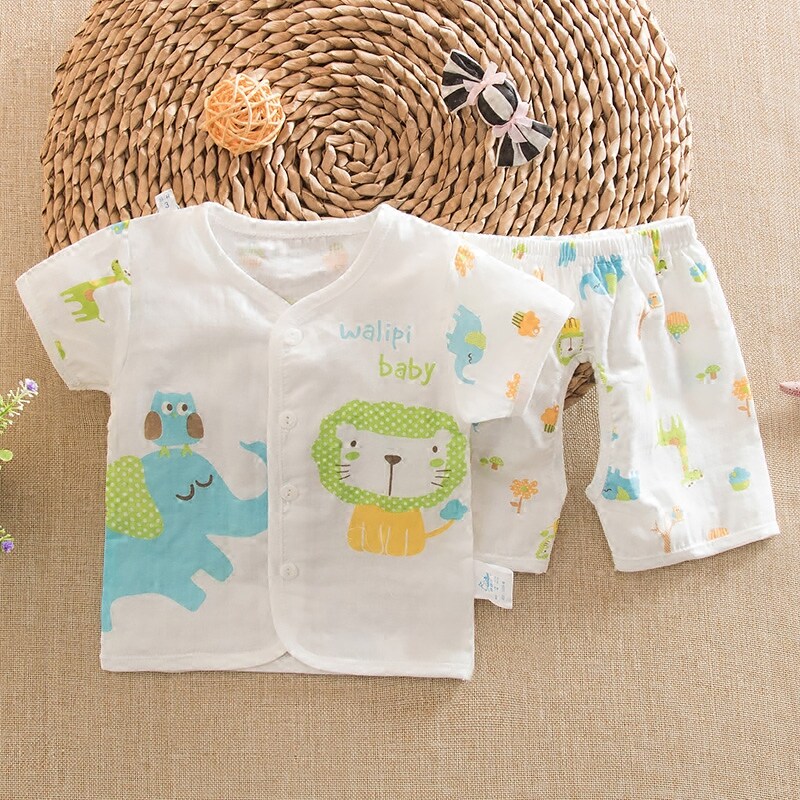 Летний детский хлопковый марлевый летний костюм, комплект для раннего возраста, короткий рукав
