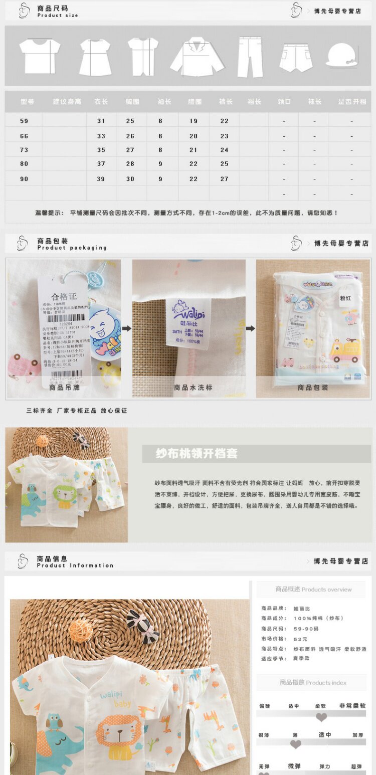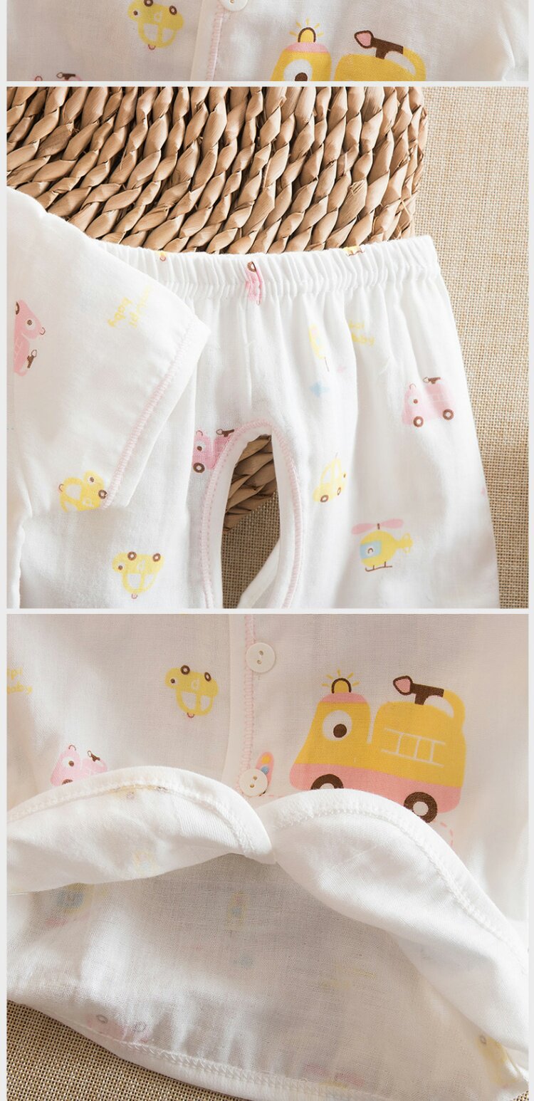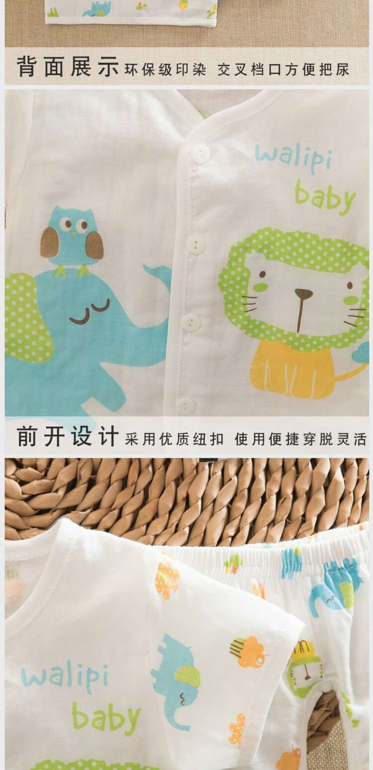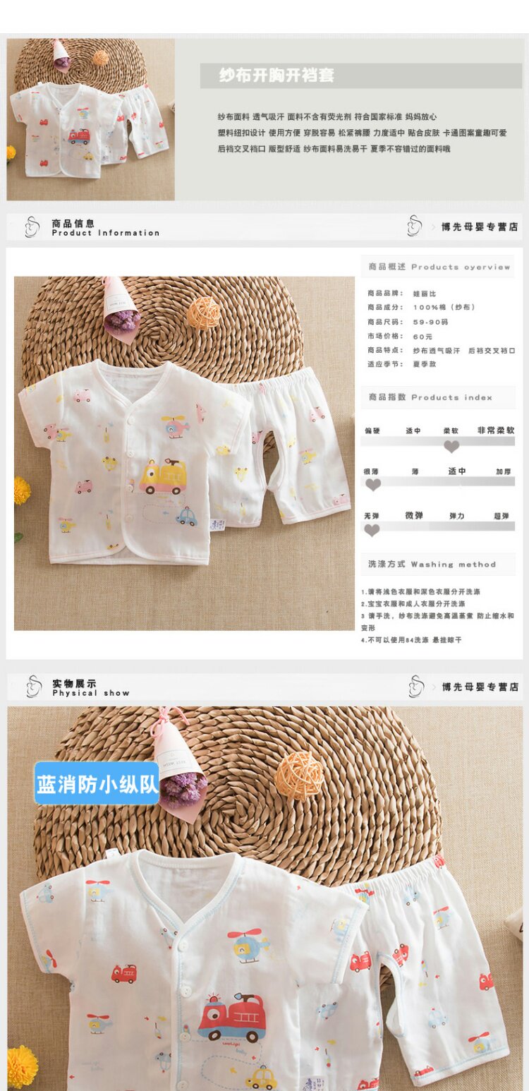 Летний детский хлопковый марлевый летний костюм, комплект для раннего возраста, короткий рукав