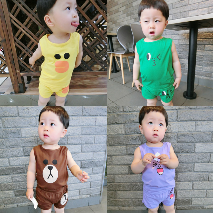 Летняя летняя одежда, летний комплект, детский комбинезон, детская мультяшная майка, шорты, 1-3 лет, детская одежда