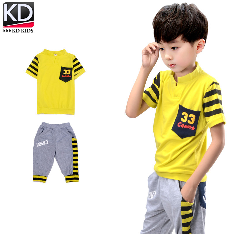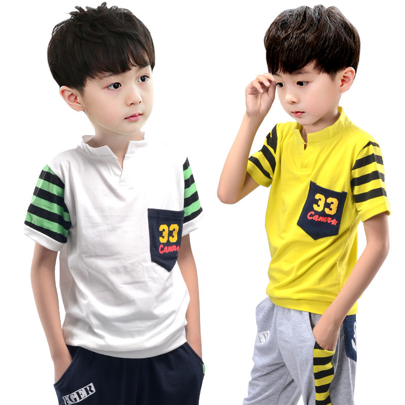 Детская летняя одежда, летний комплект, подходит для подростков, детская одежда, короткий рукав, в западном стиле