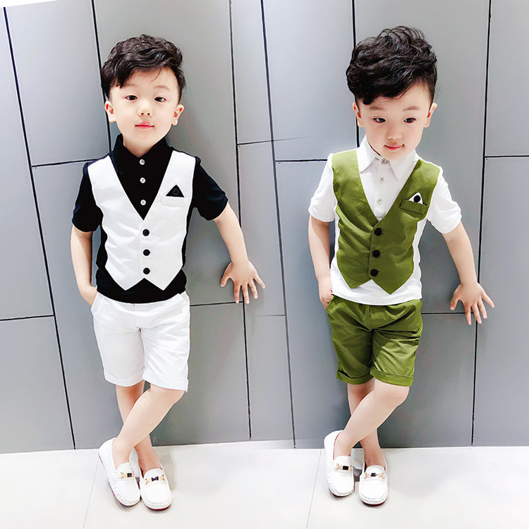 Летняя одежда, жилет, комплект, детский костюм для мальчиков, детское платье, детская одежда, короткий рукав, для подиума