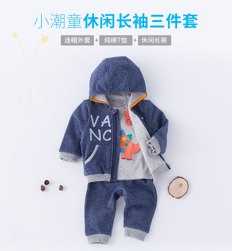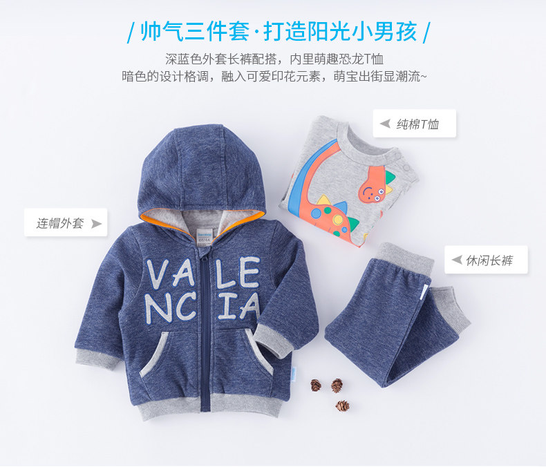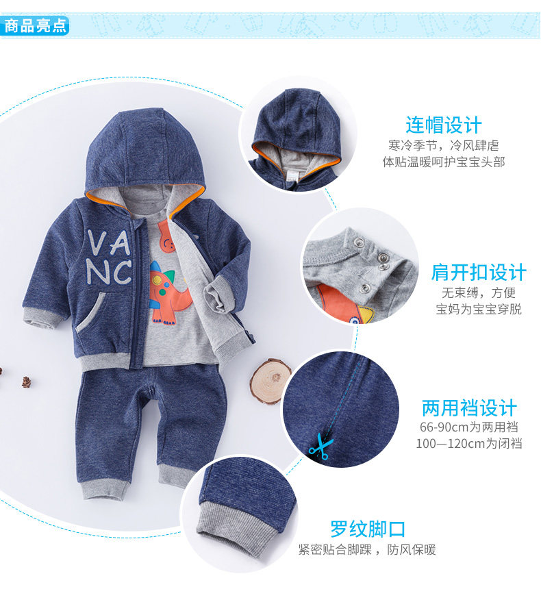 Осенний хлопковый комплект для мальчиков, удерживающая тепло толстовка с капюшоном, штаны, детская одежда, 3 шт
