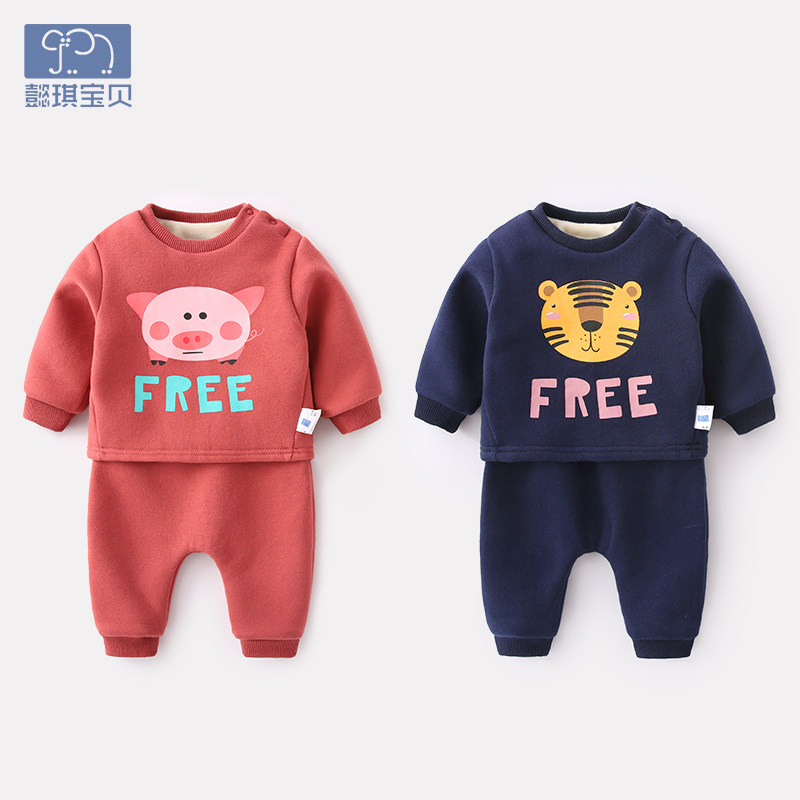 Детский осенний спортивный костюм для новорожденных, мультяшный комплект для мальчиков, флисовый пуховик, в западном стиле