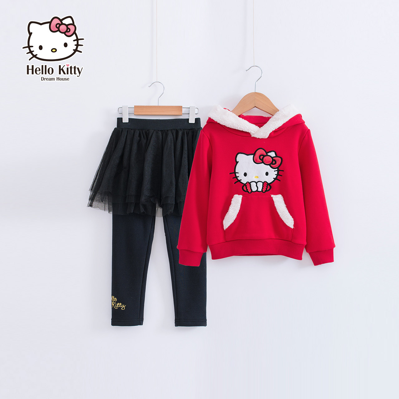 Hello Kitty, пуховик, комплект, толстовка с капюшоном, увеличенная толщина