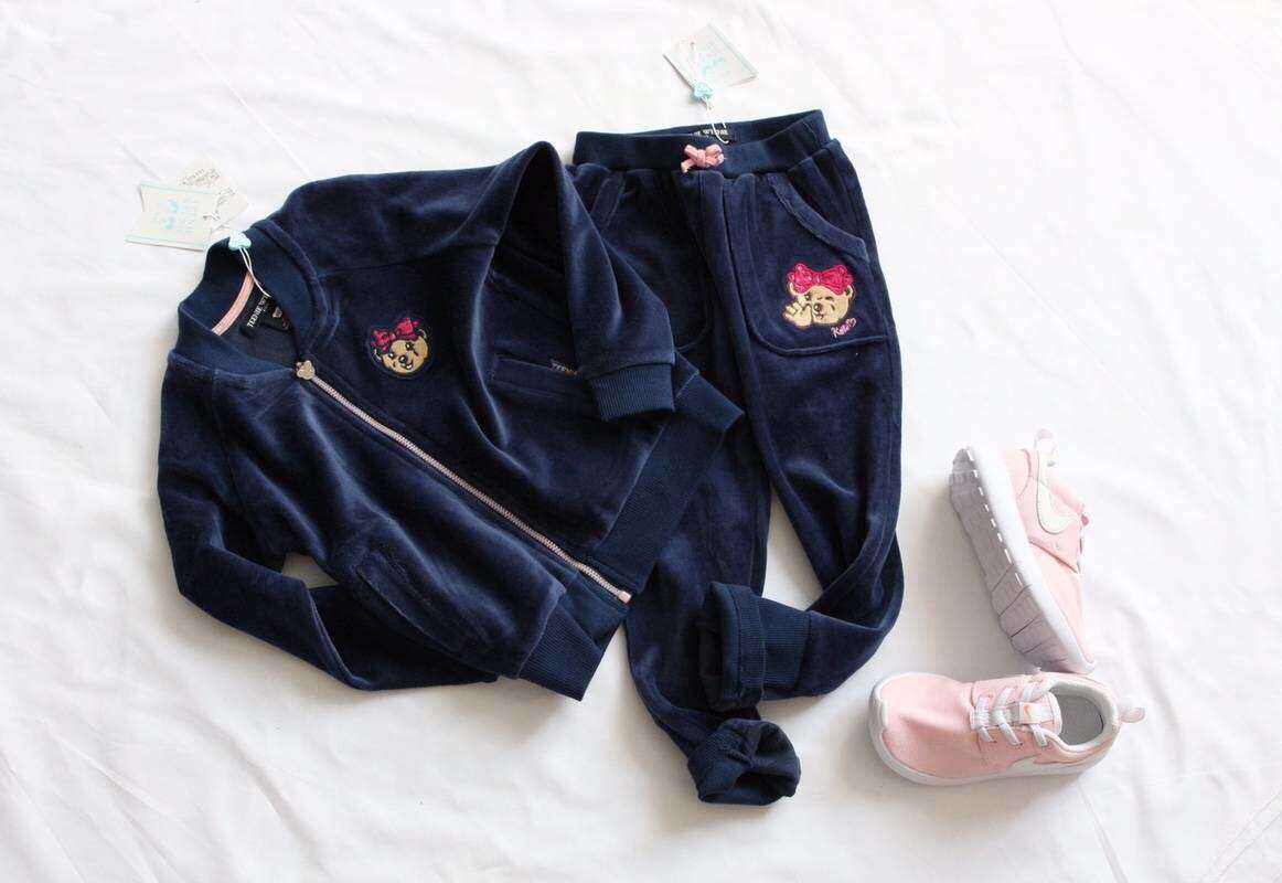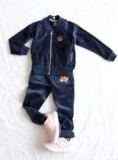 Бархатный лебедь, кардиган, синий комплект, куртка с молнией, спортивные штаны, с медвежатами