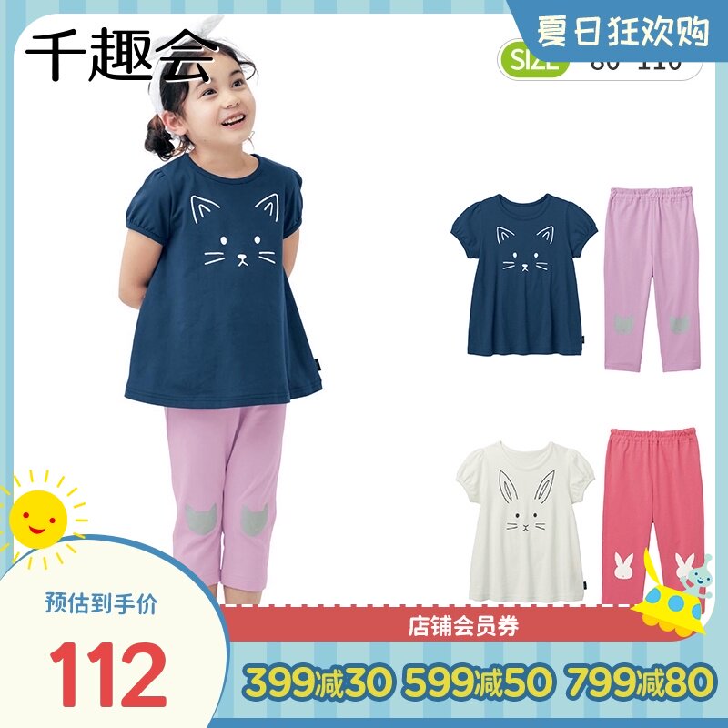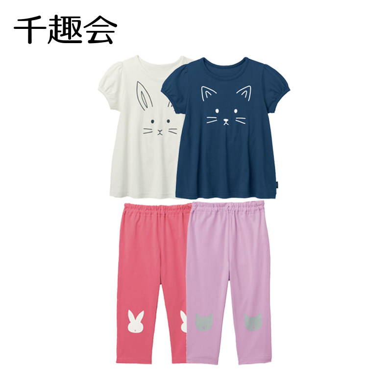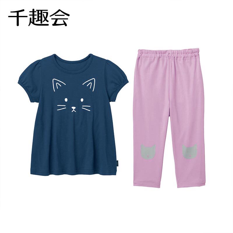 Японские летние штаны, хлопковая пижама, комплект для девочек, детская одежда, короткий рукав