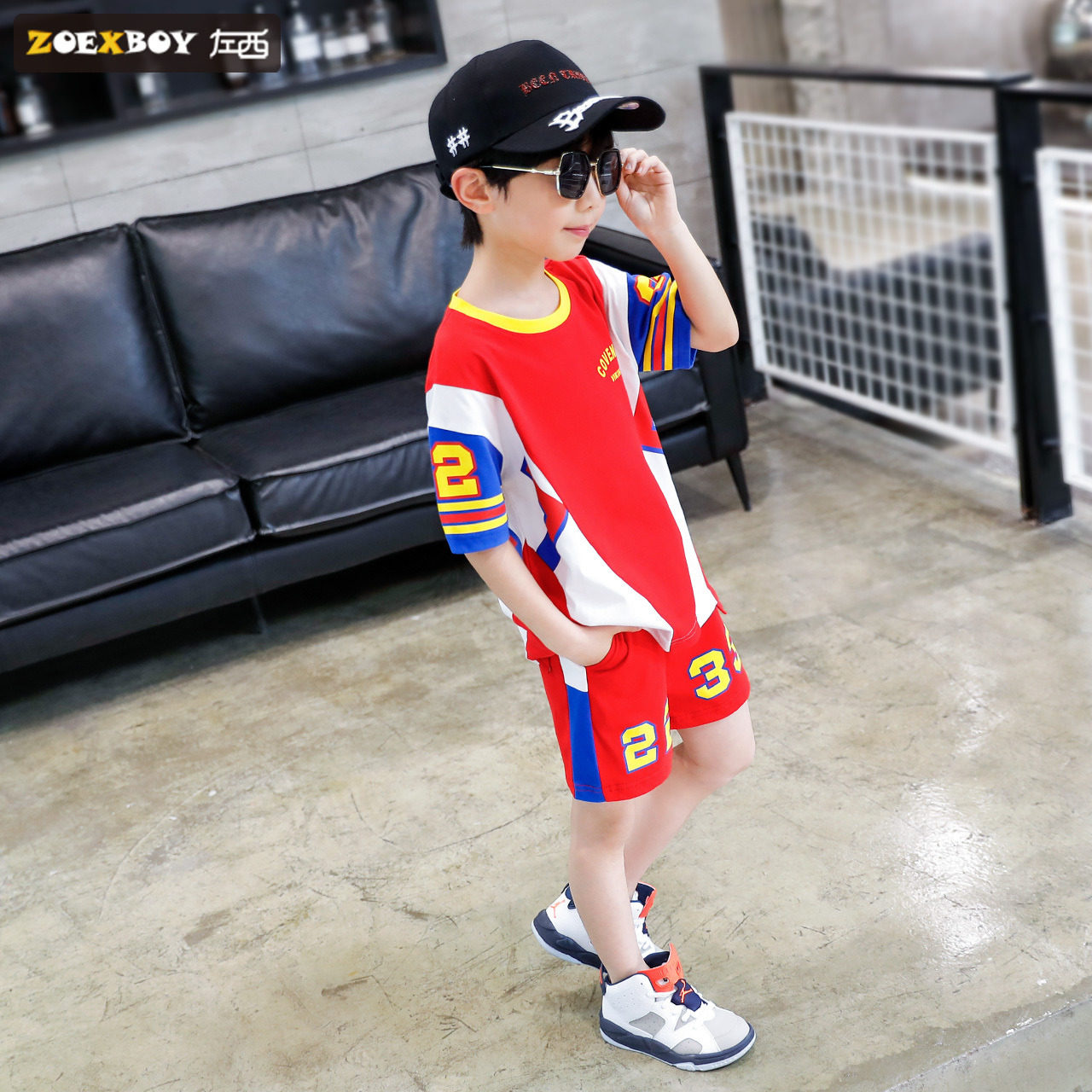 左西 Летняя одежда, детский спортивный хлопковый комплект, 2020, короткий рукав, подходит для подростков, в западном стиле, в корейском стиле
