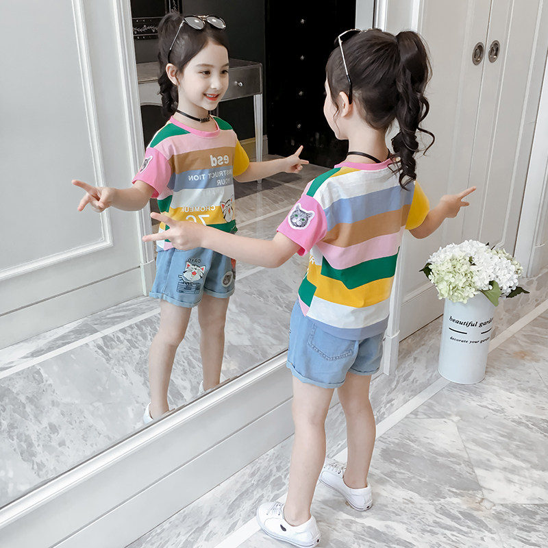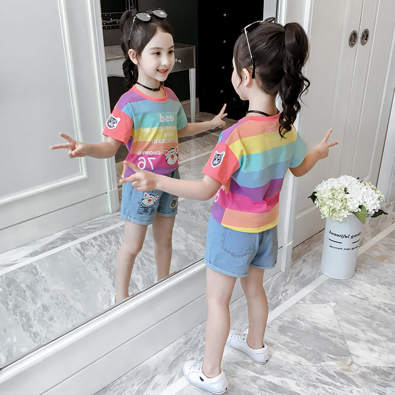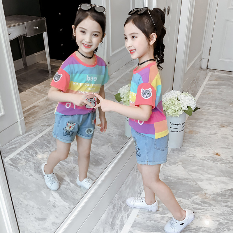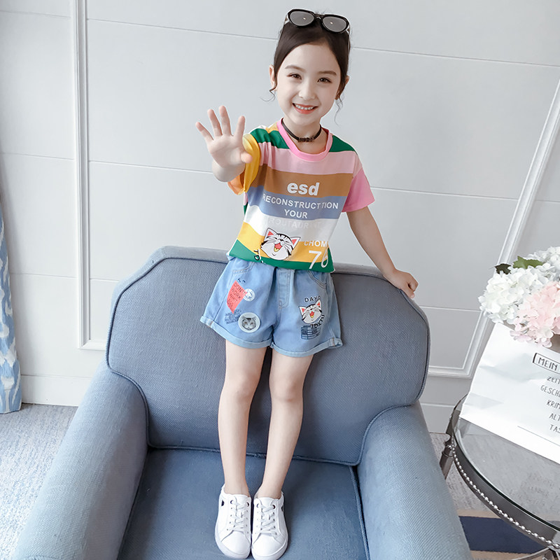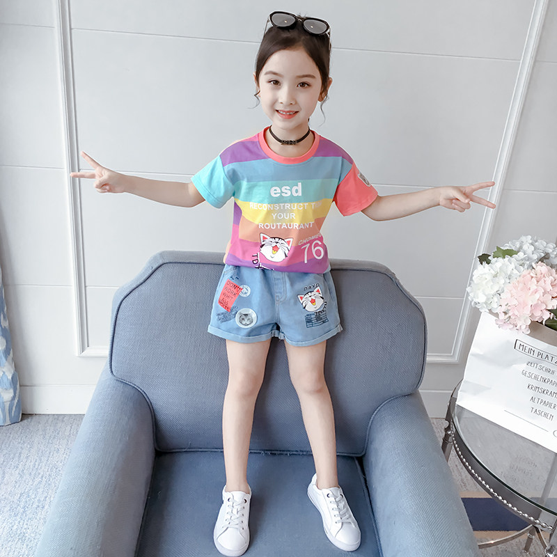 Комплект, летняя летняя одежда, детская джинсовая юбка, 2019, в западном стиле, детская одежда