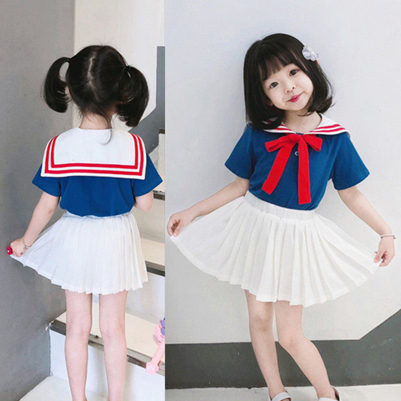 Военно-морской шифоновый комплект для девочек, летняя брендовая юбка в складку, в западном стиле