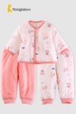 Демисезонный детский лонгслив, пуховик, хлопковый комплект подходит для мужчин и женщин для девочек, 3 предмета, 1-6 мес.