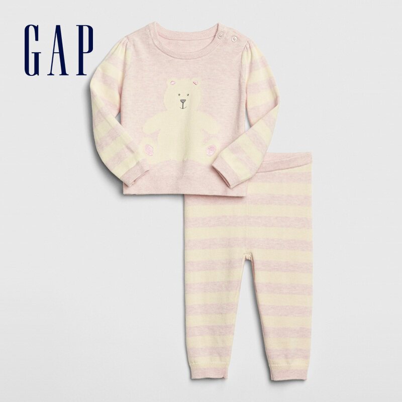 Gap Детский трикотажный хлопковый свитер с круглым воротником, штаны, милый комплект для девочек, с медвежатами, детская одежда