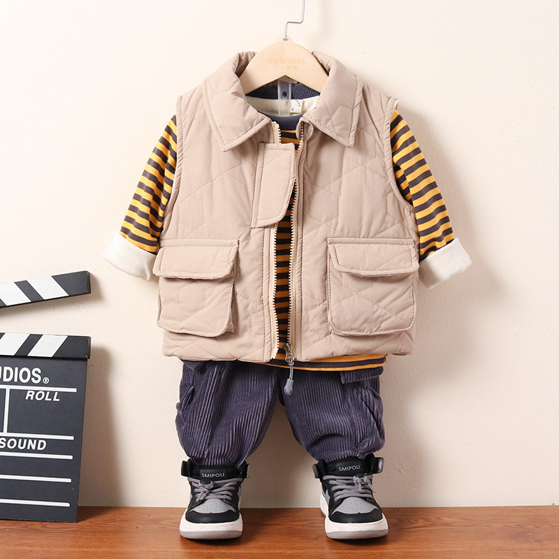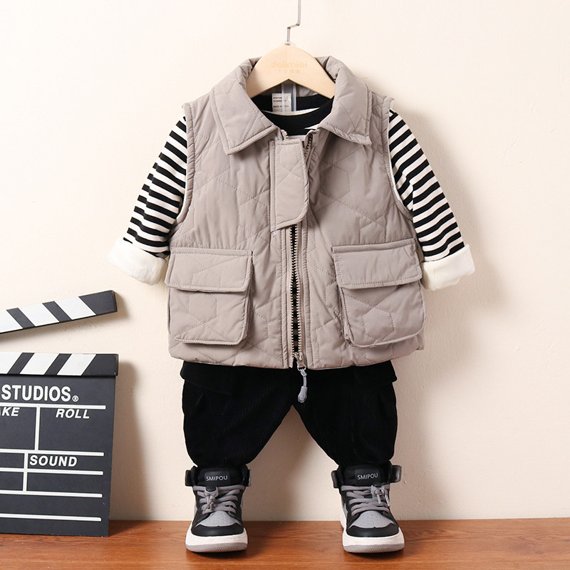 Осенний комплект для мальчиков, флисовый удерживающий тепло детский пуховик, 2020, в западном стиле, 3 предмета