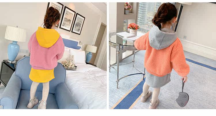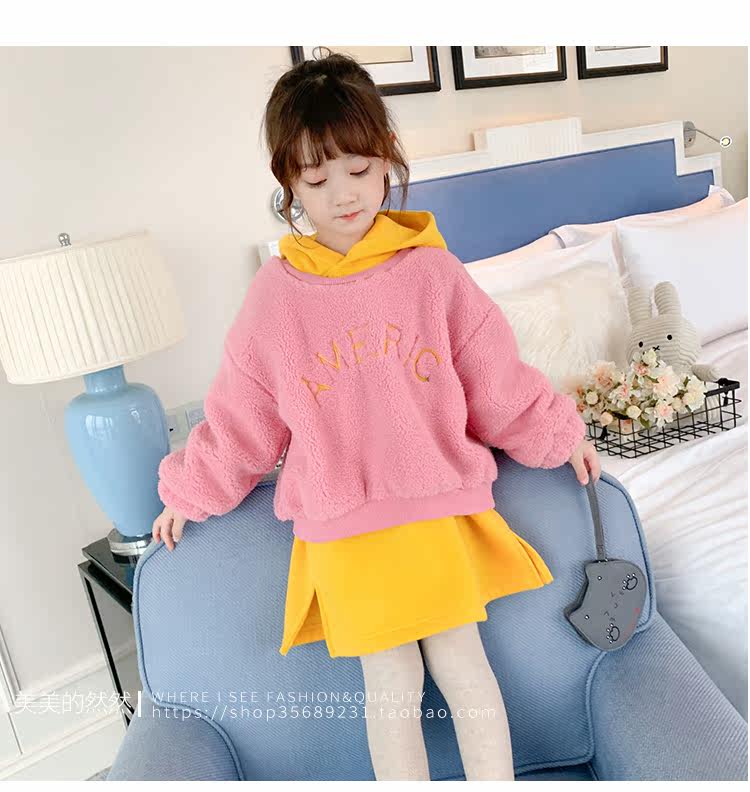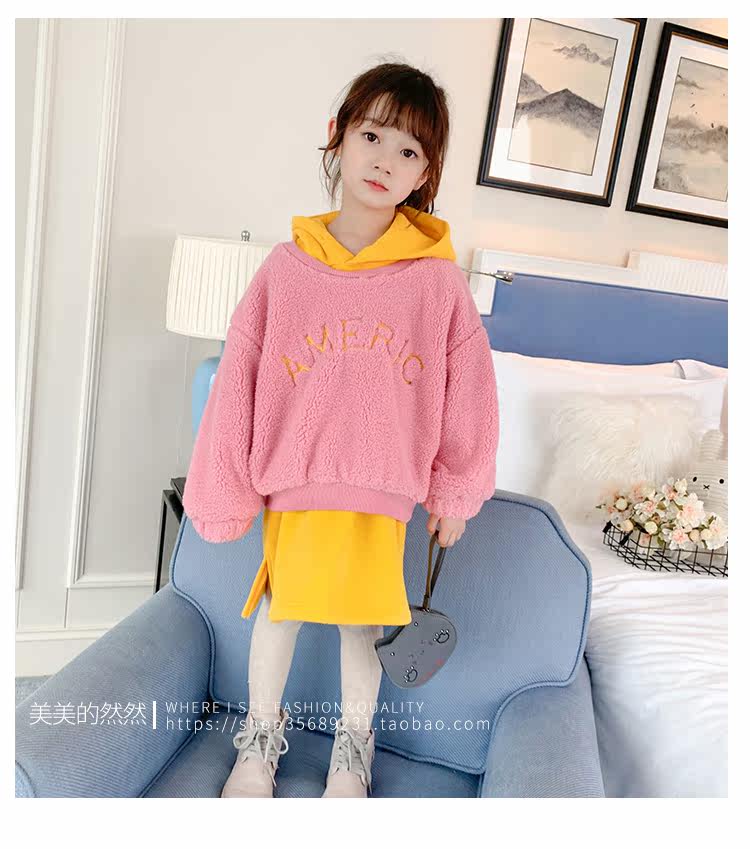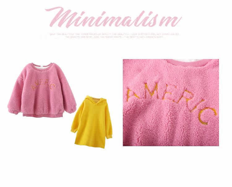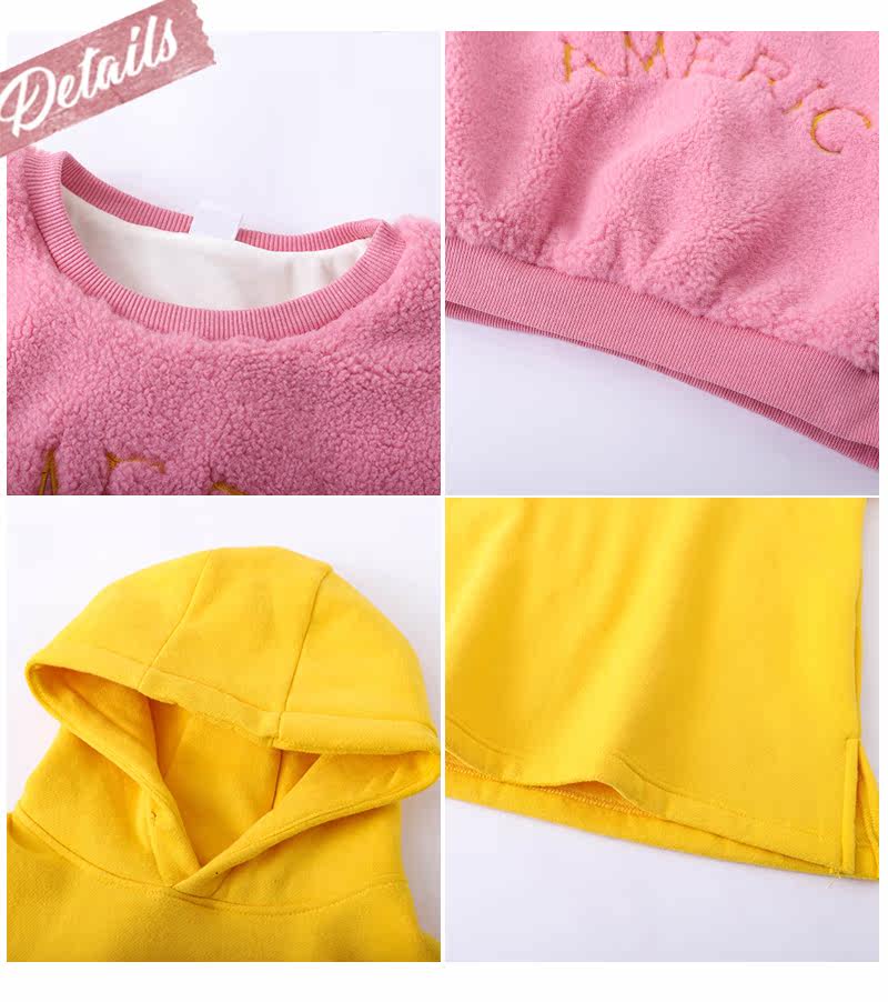 Розовый свитер с капюшоном с ярко -желтым длинным интерьером