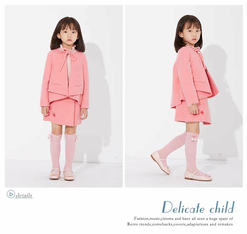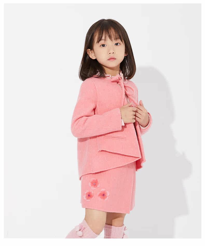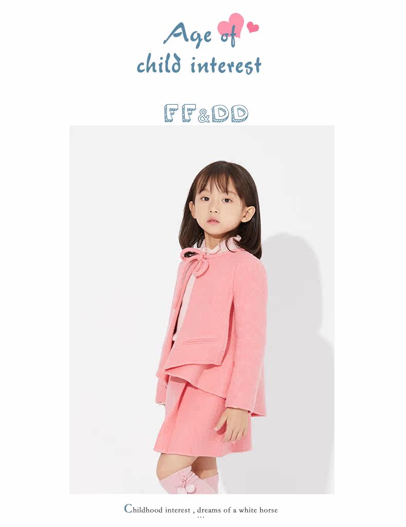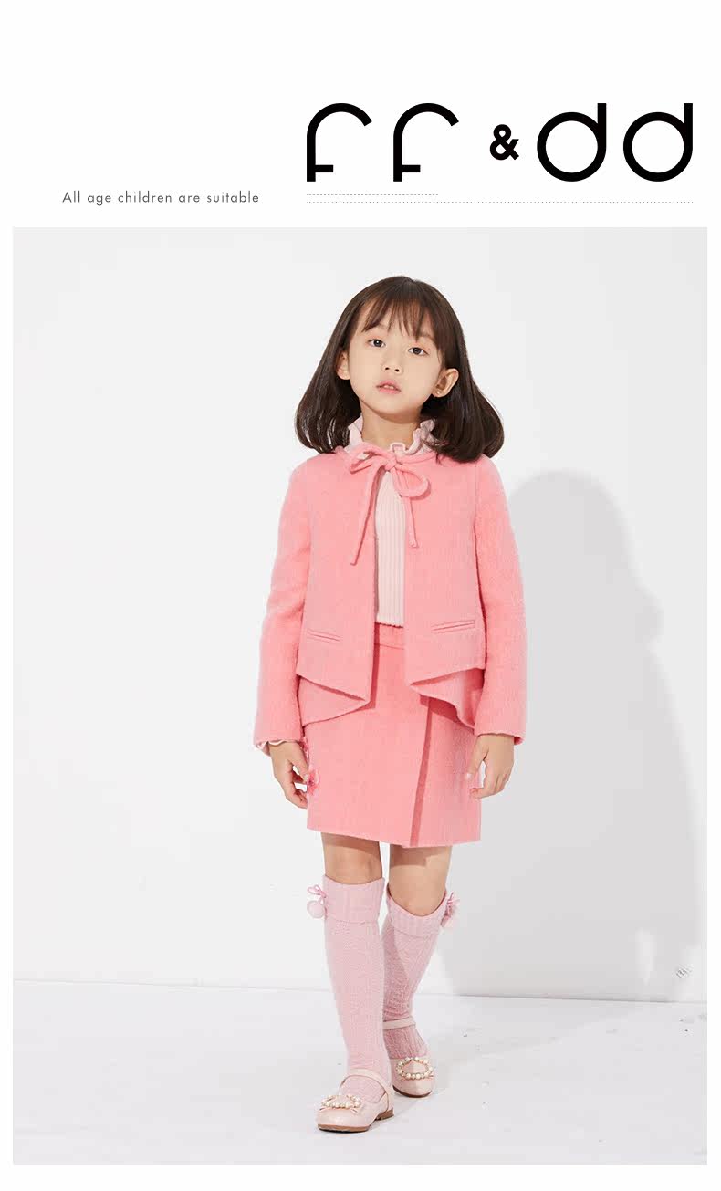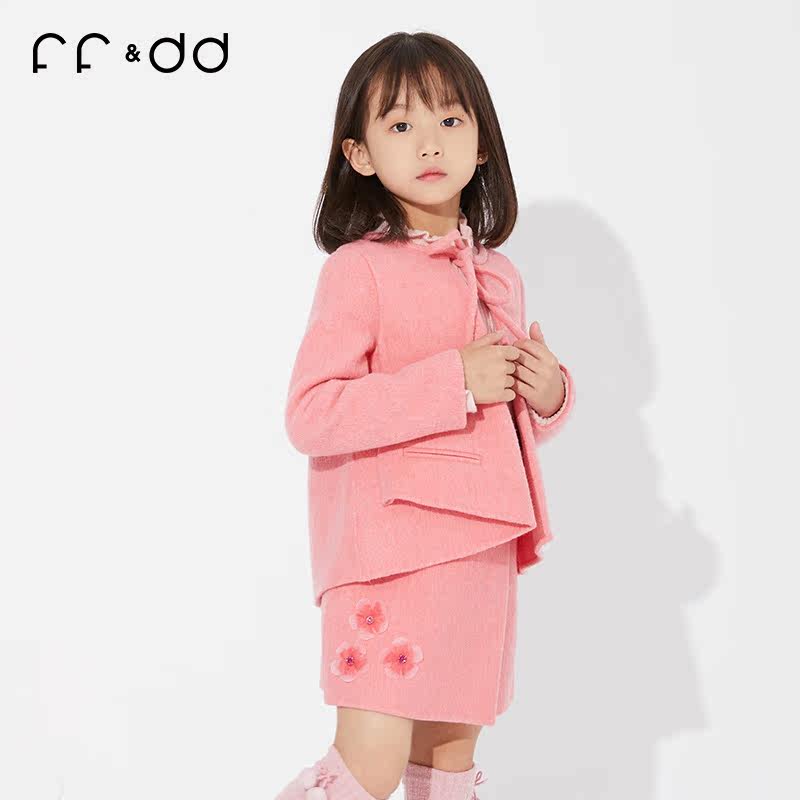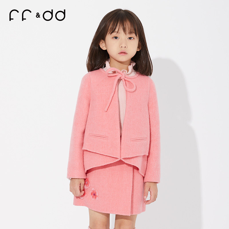 Ff & amp; dd Детская одежда зима Новая благородная стройная девушка 2y45046 Двух -шерстяное пальто