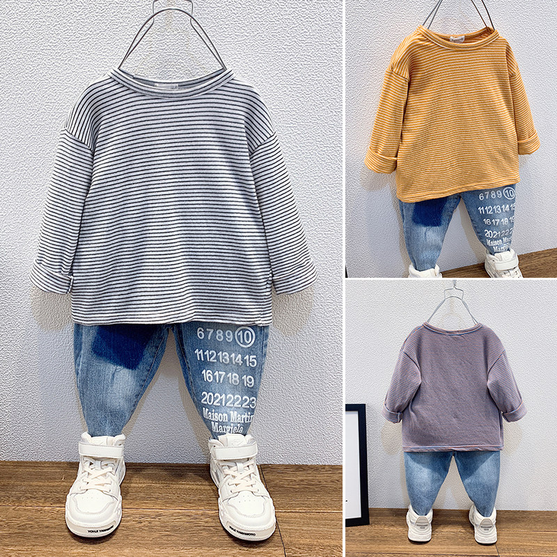 Лонгслив, осенний приятный телу весенний комплект для мальчиков, коллекция 2021, в западном стиле, в корейском стиле