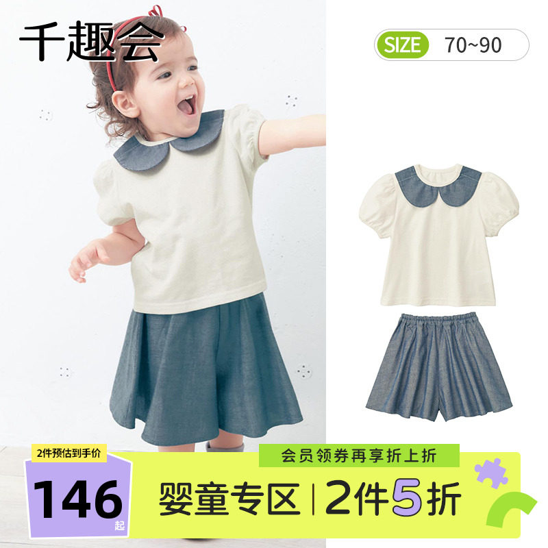 Летняя одежда для раннего возраста, хлопковые шорты, детский комплект для выхода на улицу, короткий рукав, рукава фонарики