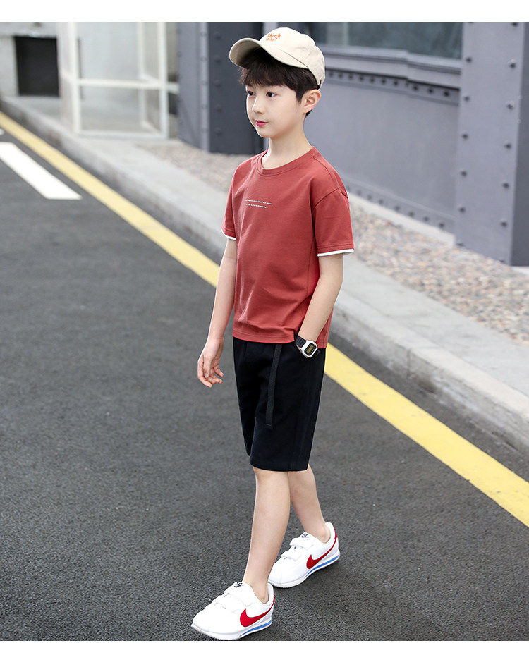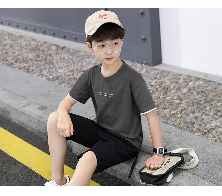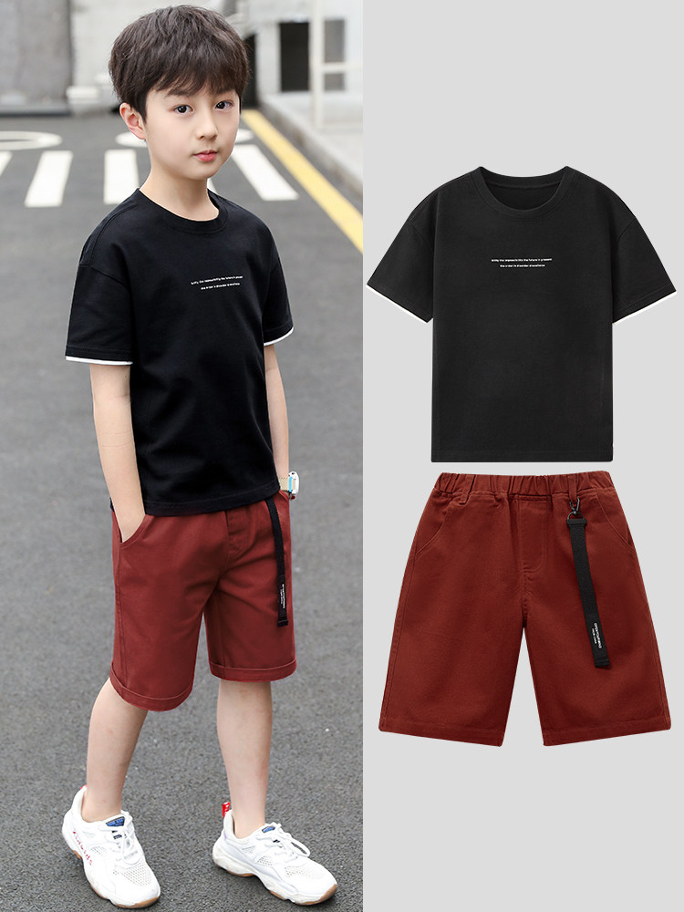 巧米兔 Летняя одежда для мальчиков, нарукавники, комплект, футболка, штаны, короткий рукав, 2 шт, подходит для подростков
