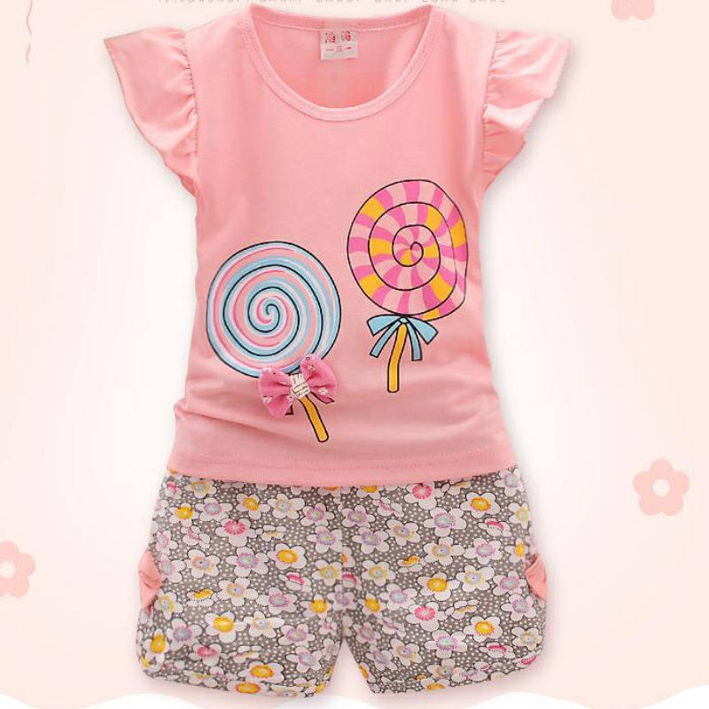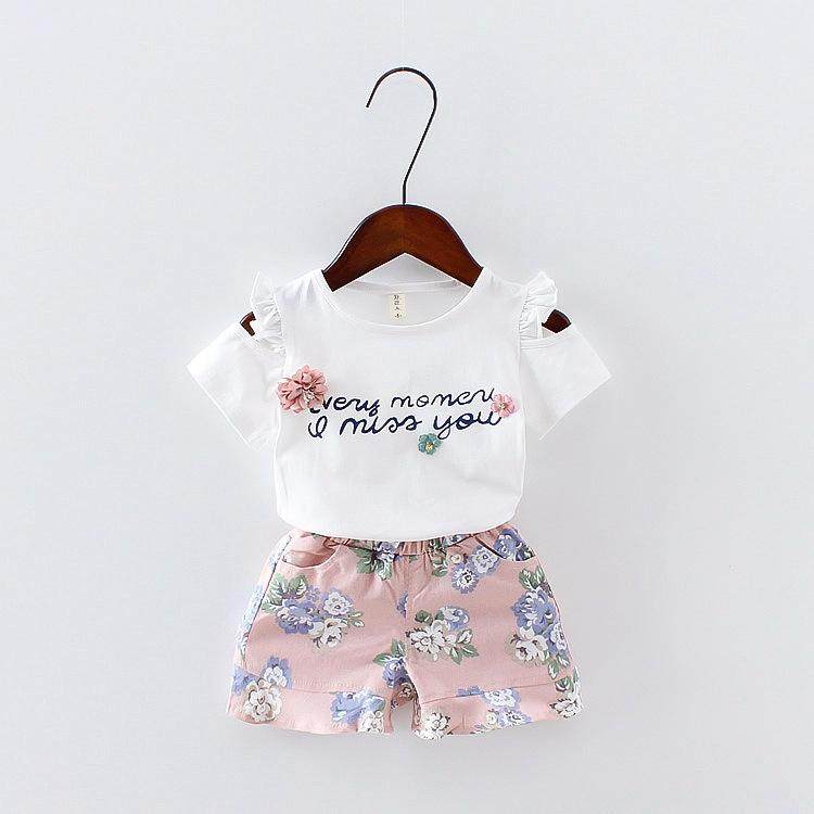 Комплект, детская модная летняя одежда, в корейском стиле, цветочный принт