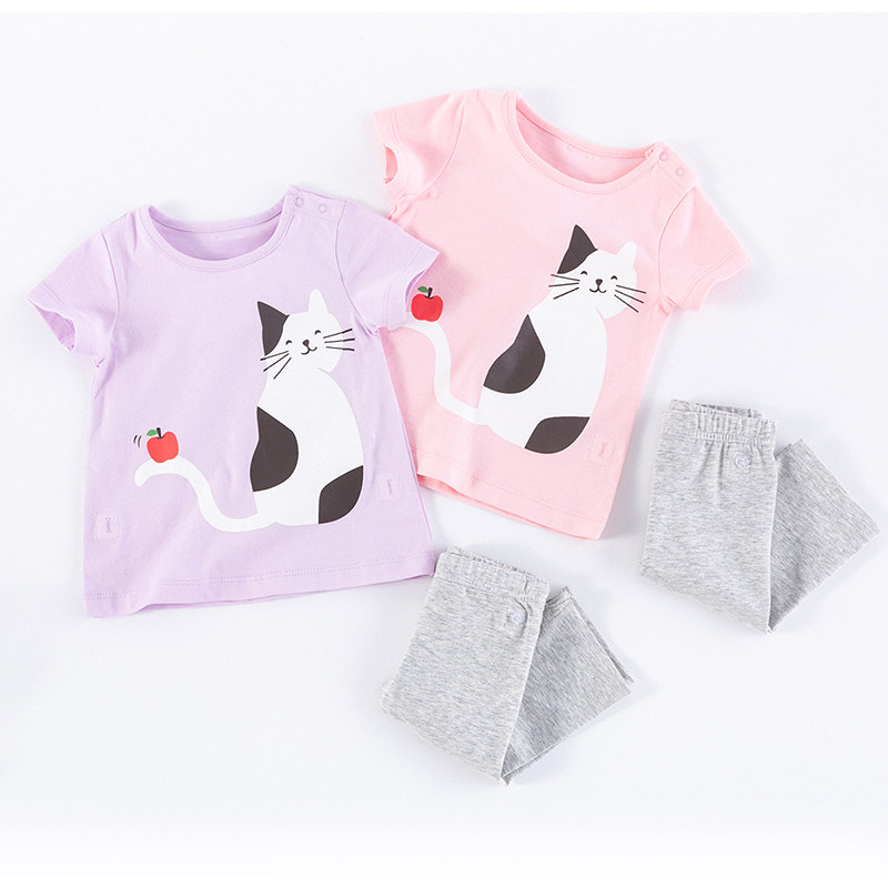 Хлопковые нарукавники, летний тонкий комплект, детская мультяшная футболка, леггинсы, сезон 2021