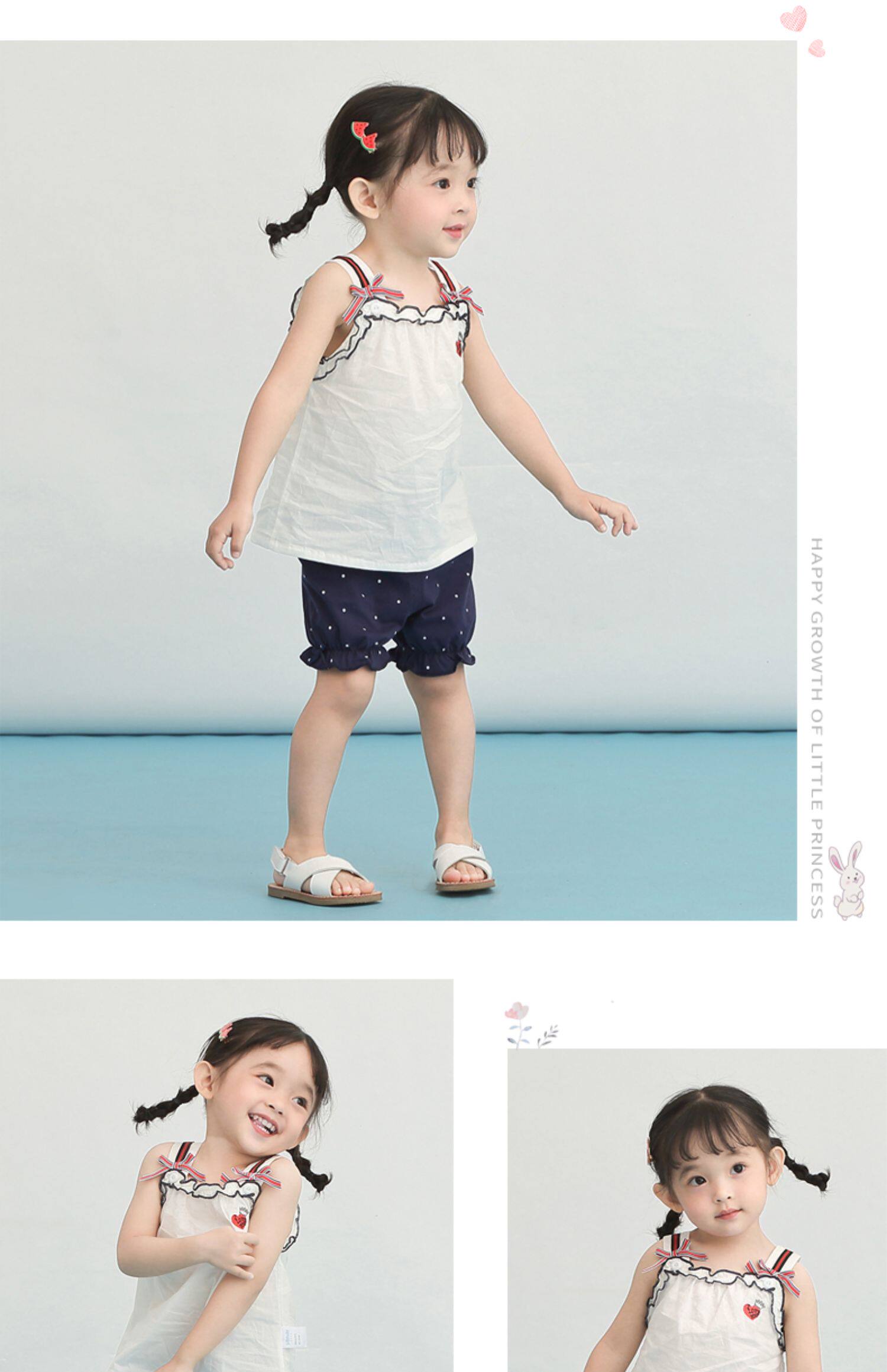 Детский летний тонкий комплект, детская летняя одежда для девочек, эффект подтяжки, в западном стиле